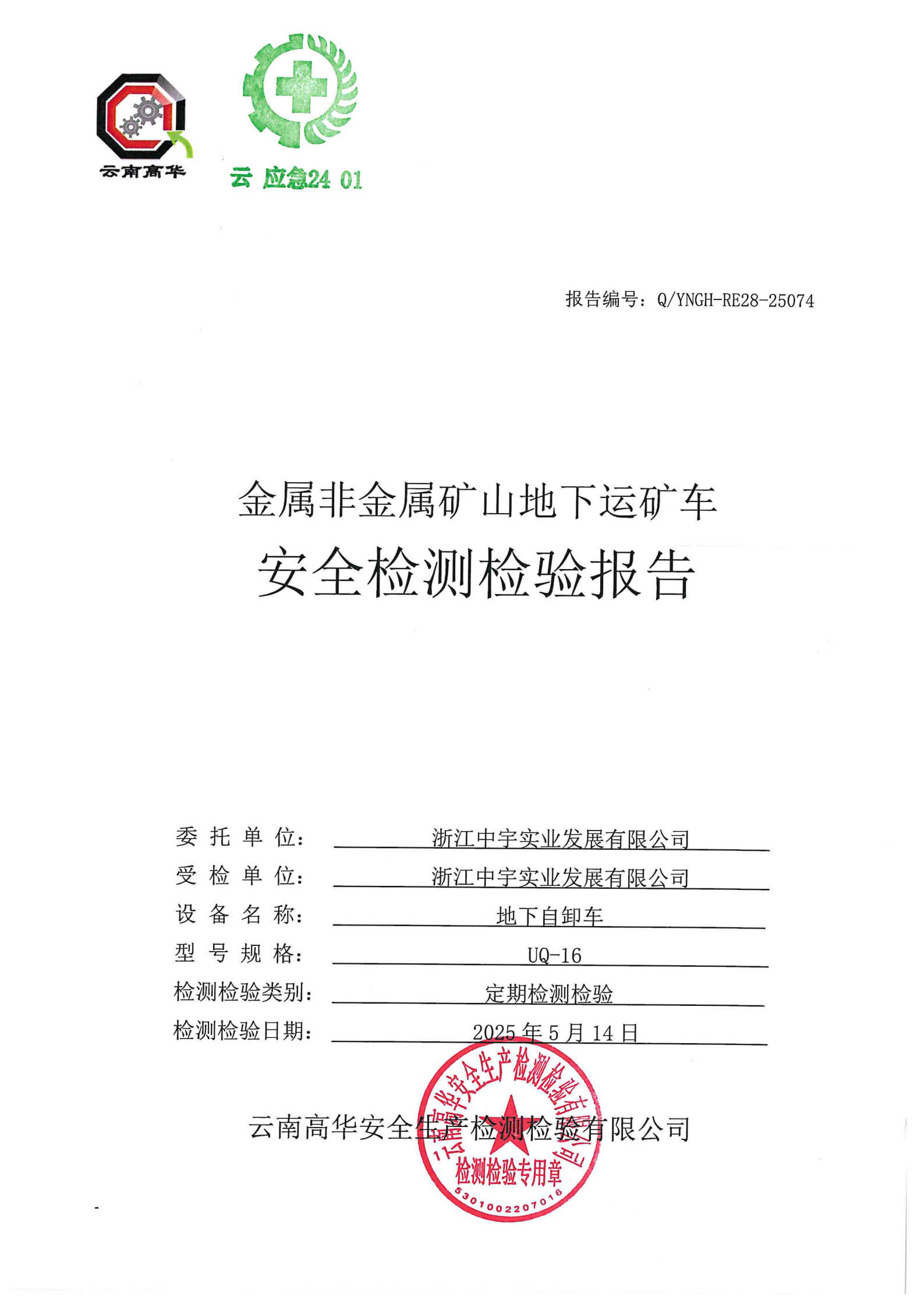 金属非金属露天矿山在用矿用自卸汽车安全检测检验报告