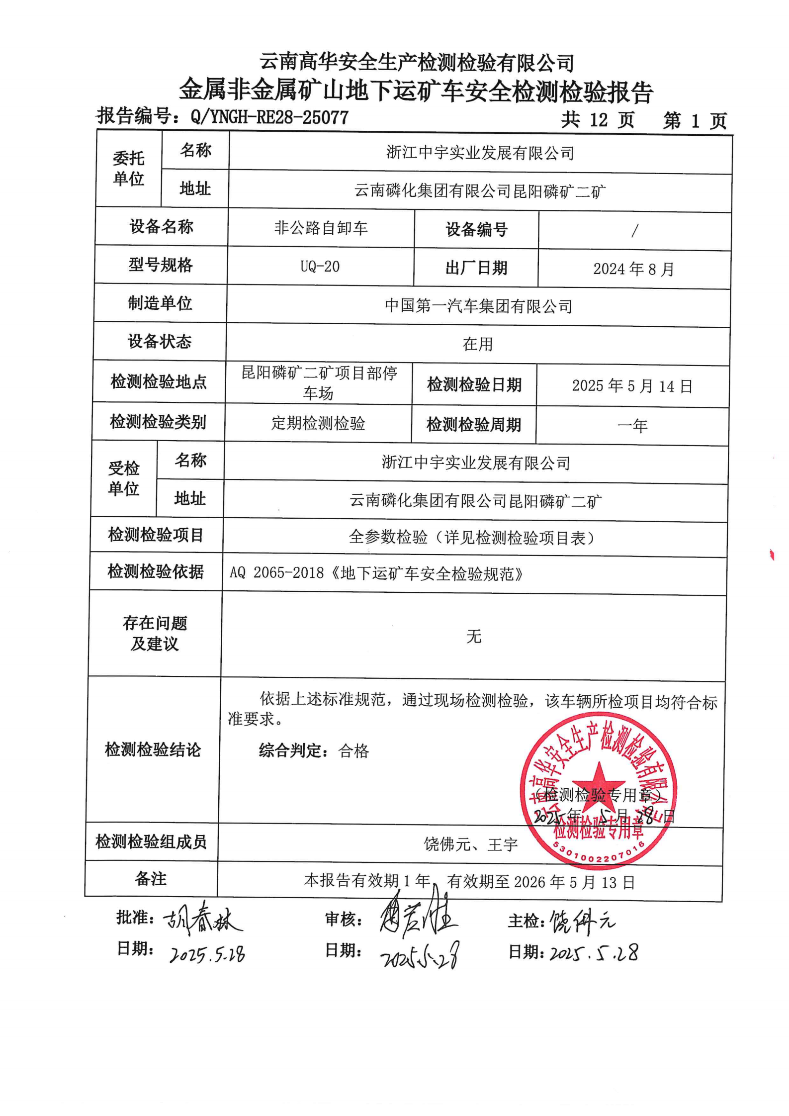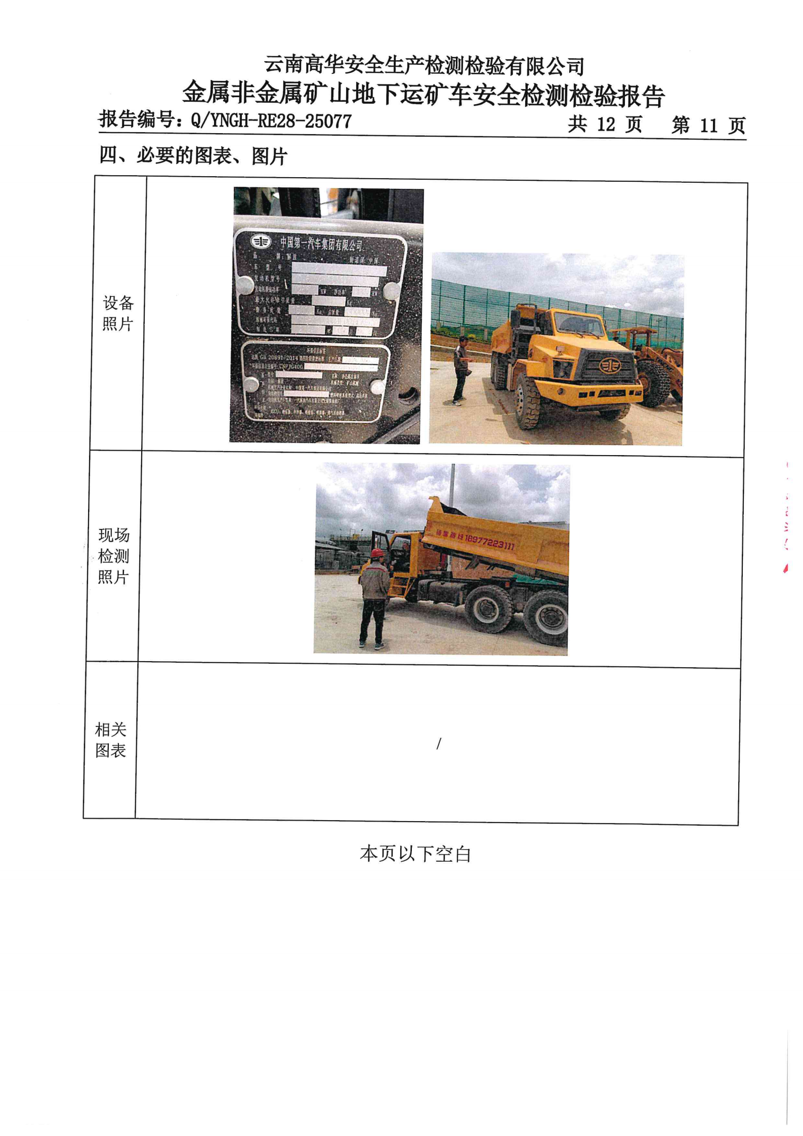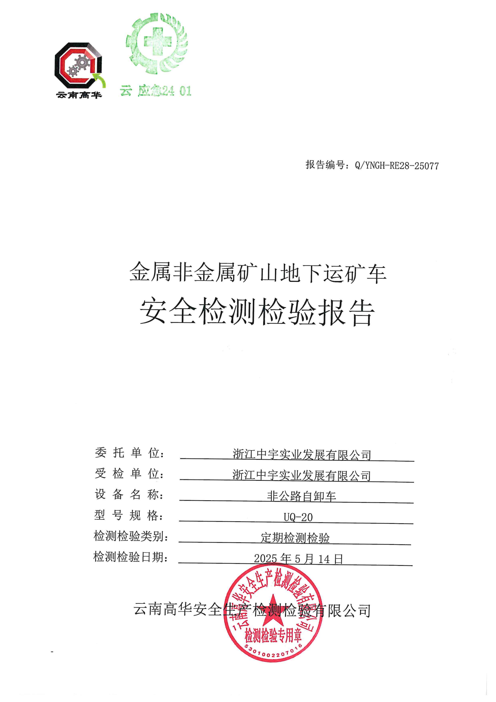 金属非金属露天矿山在用矿用自卸汽车安全检测检验报告