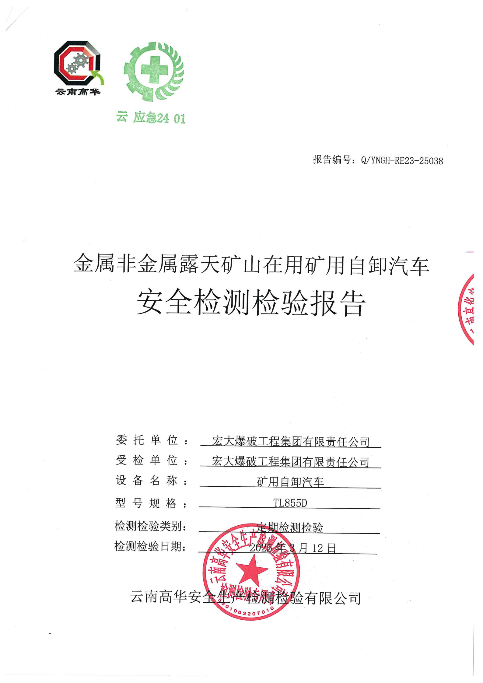 金属非金属露天矿山在用矿用自卸汽车安全检测检验报告