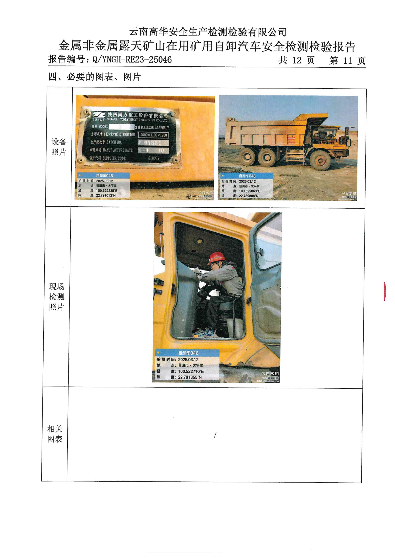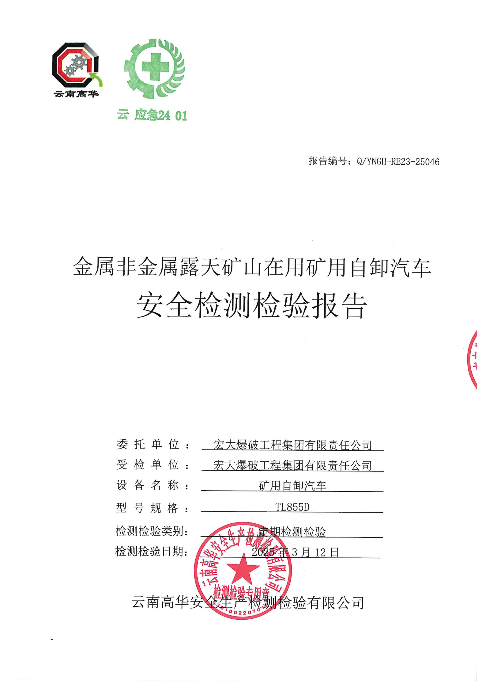 金属非金属露天矿山在用矿用自卸汽车安全检测检验报告