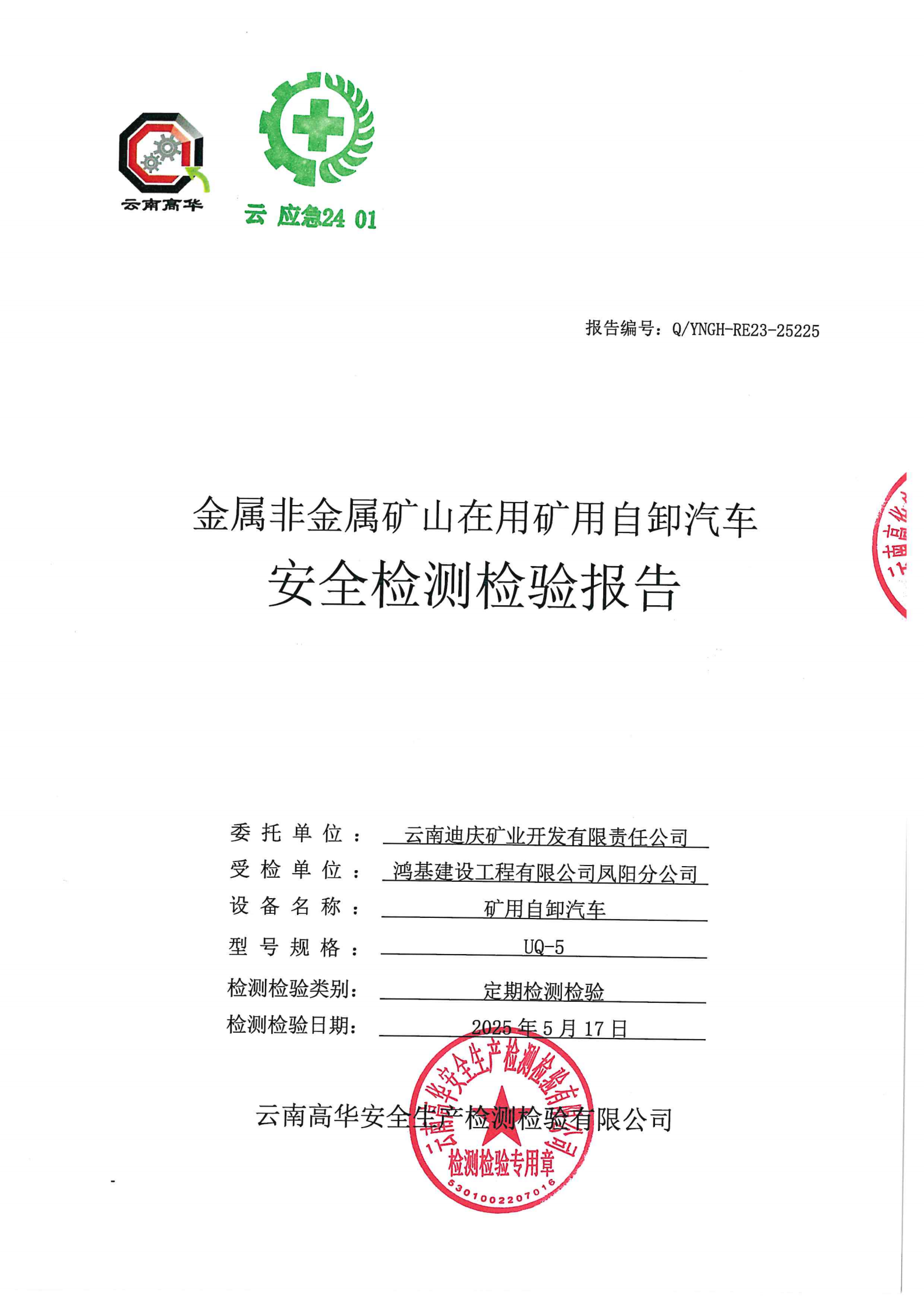 金属非金属矿山在用矿用自卸汽车安全检测检验报告