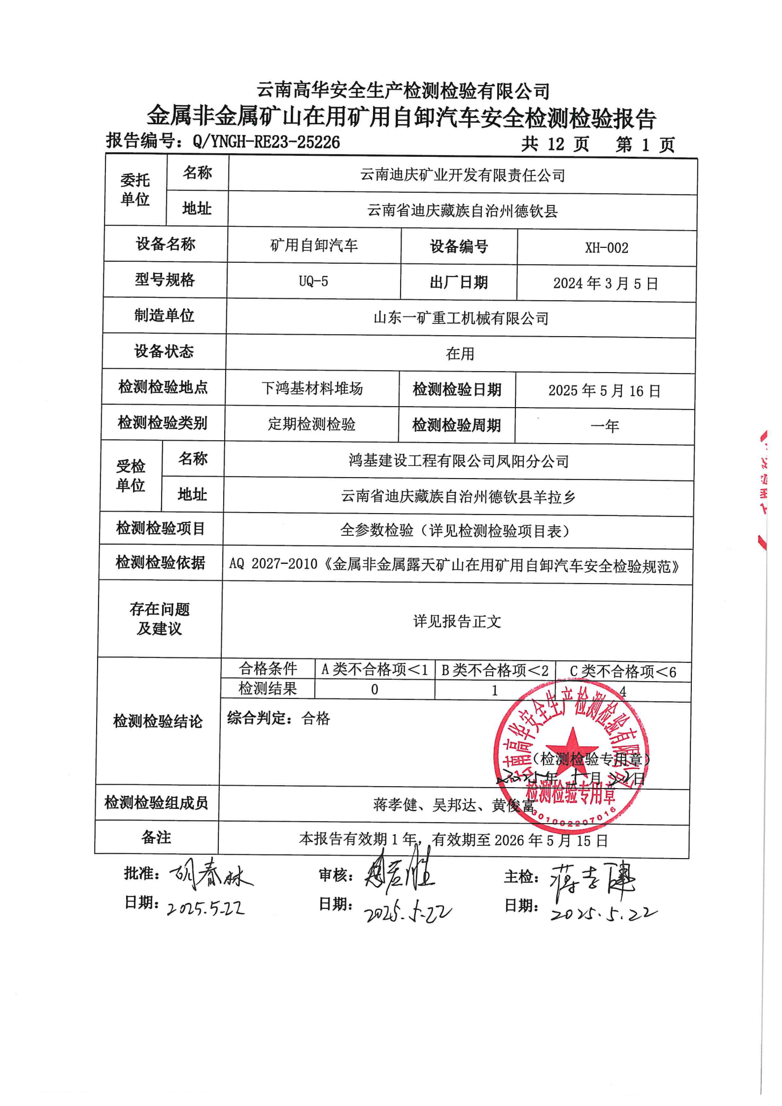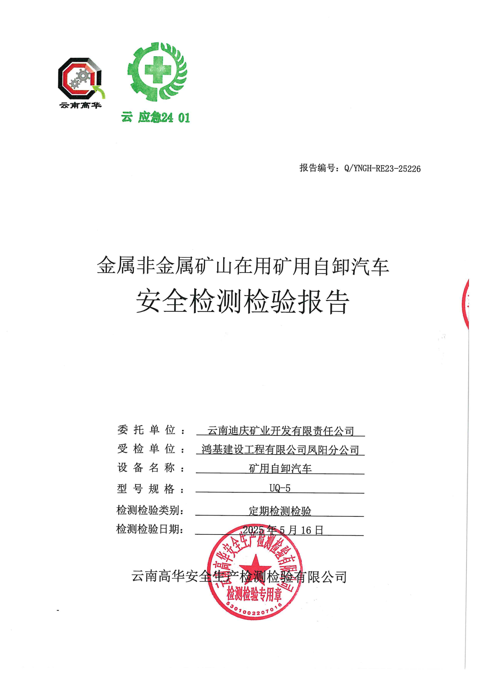 金属非金属矿山在用矿用自卸汽车安全检测检验报告