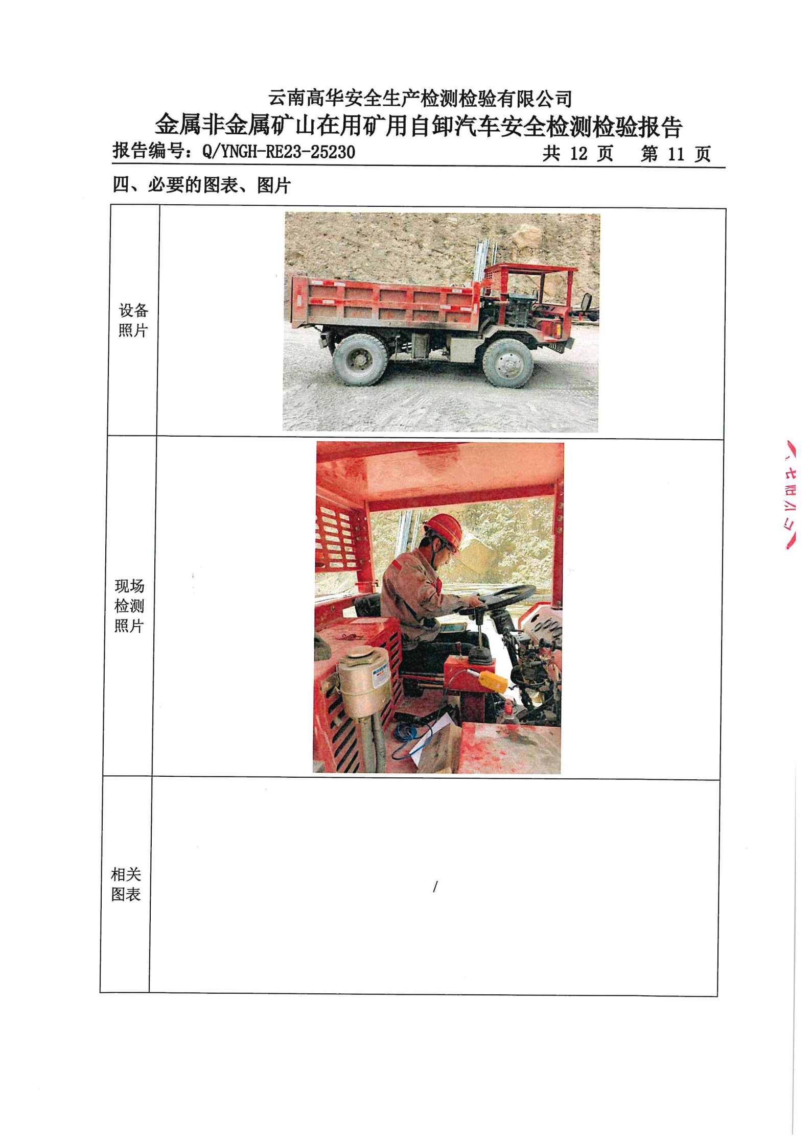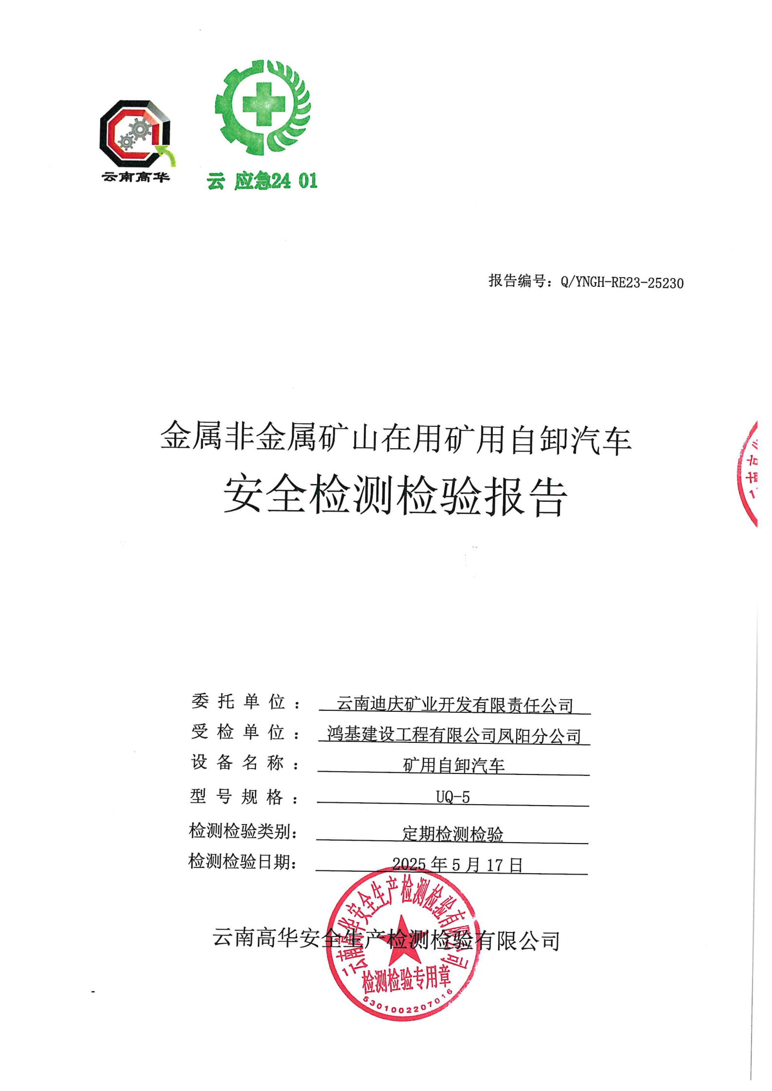 金属非金属矿山在用矿用自卸汽车安全检测检验报告