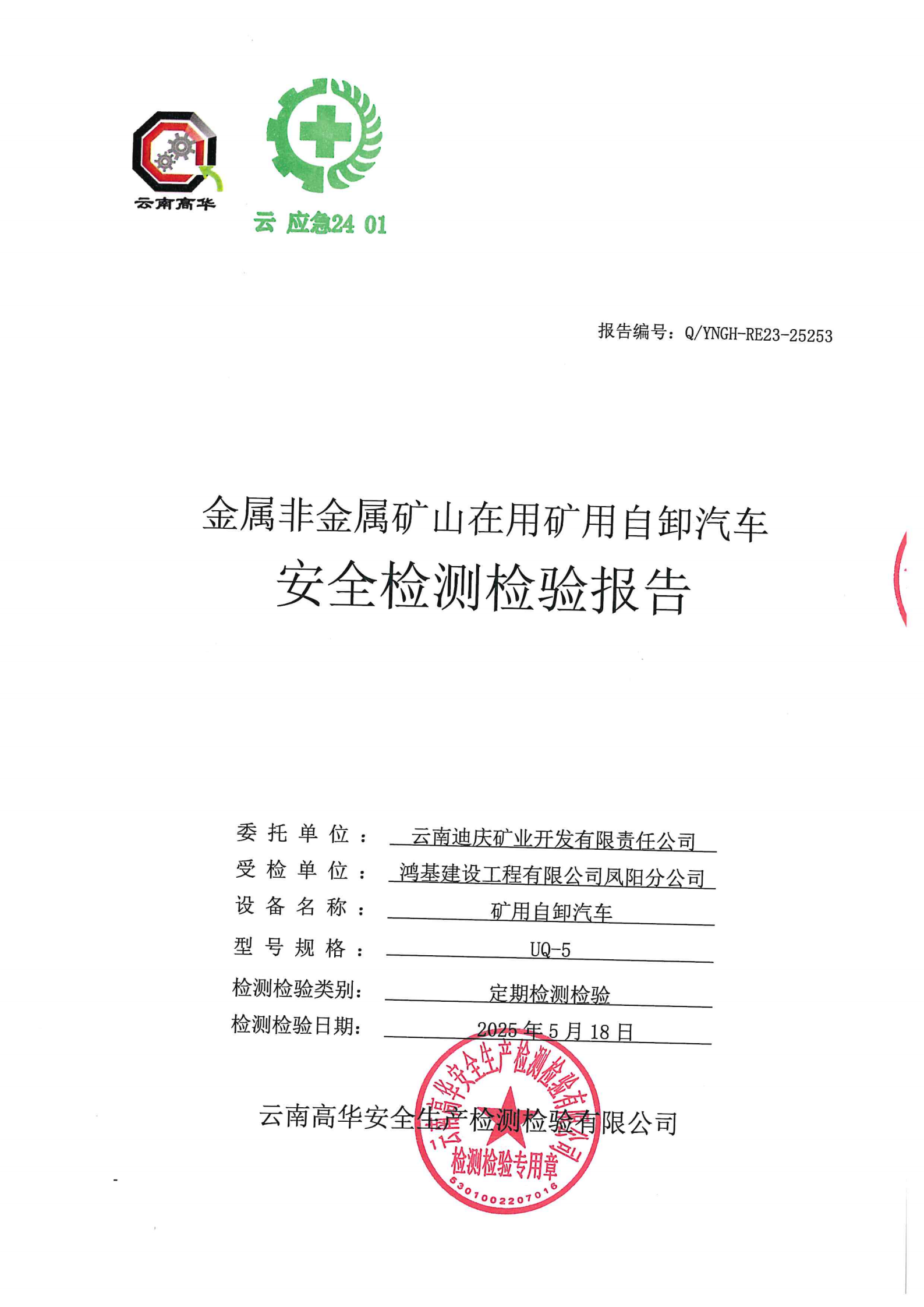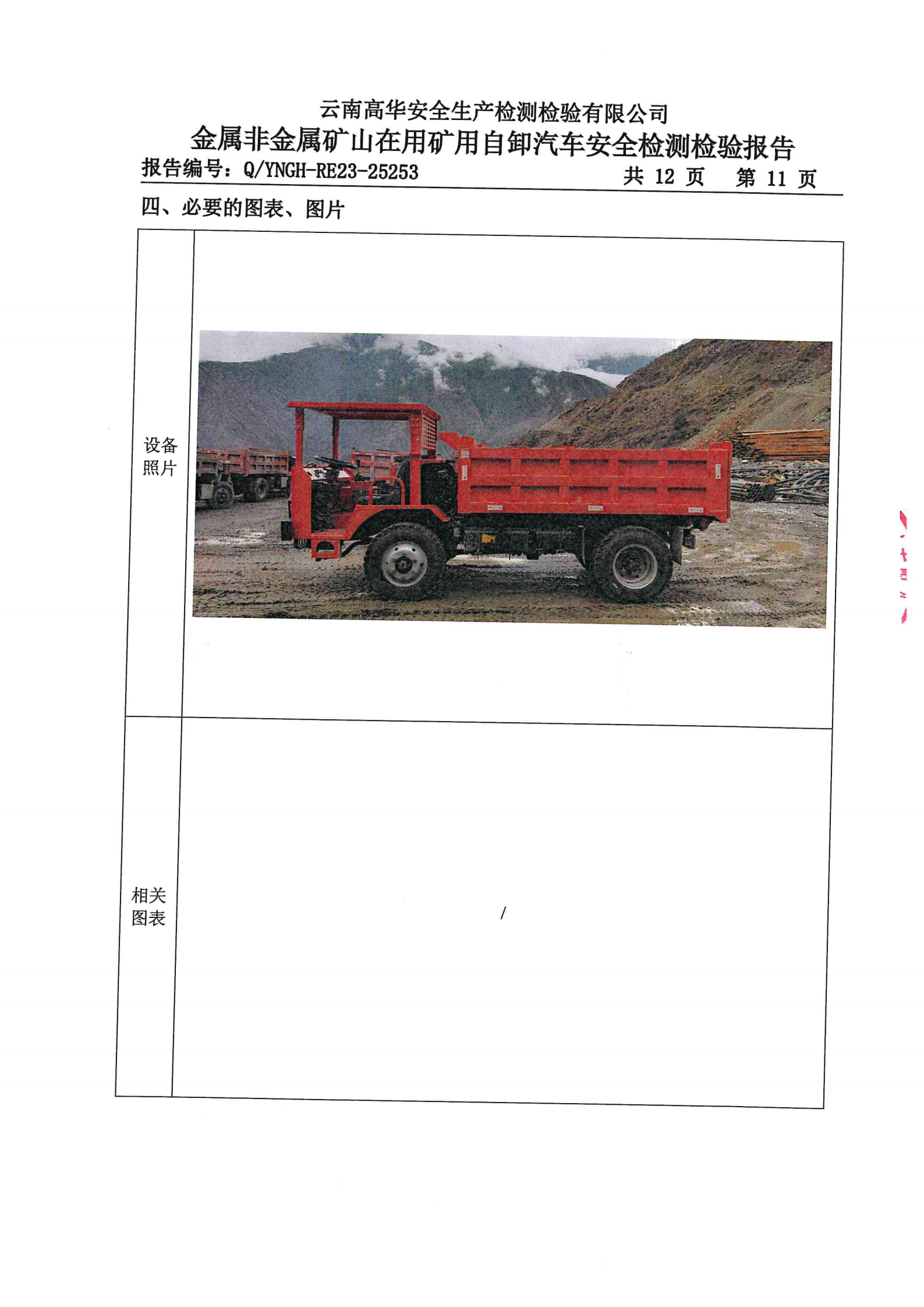 金属非金属矿山在用矿用自卸汽车安全检测检验报告