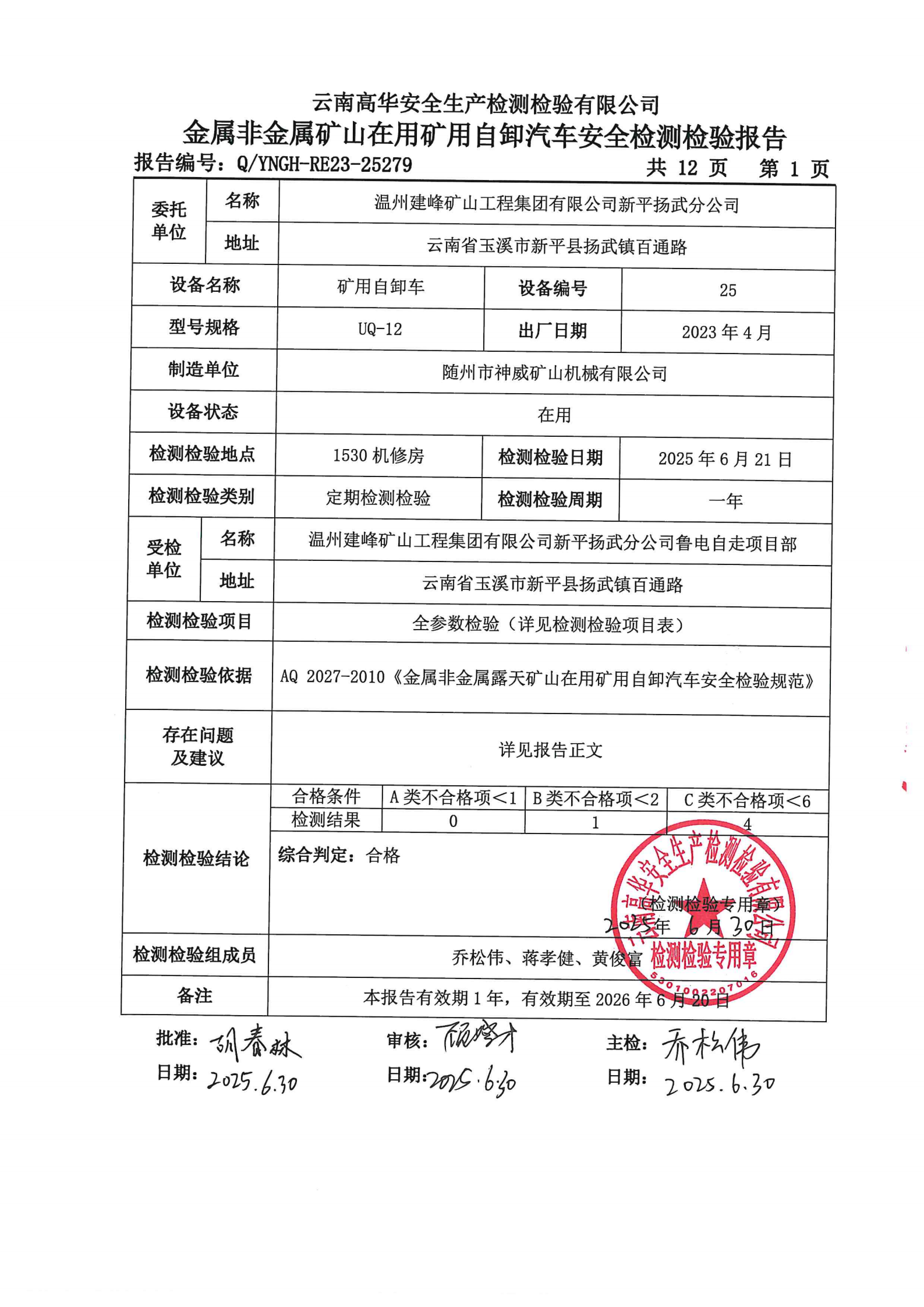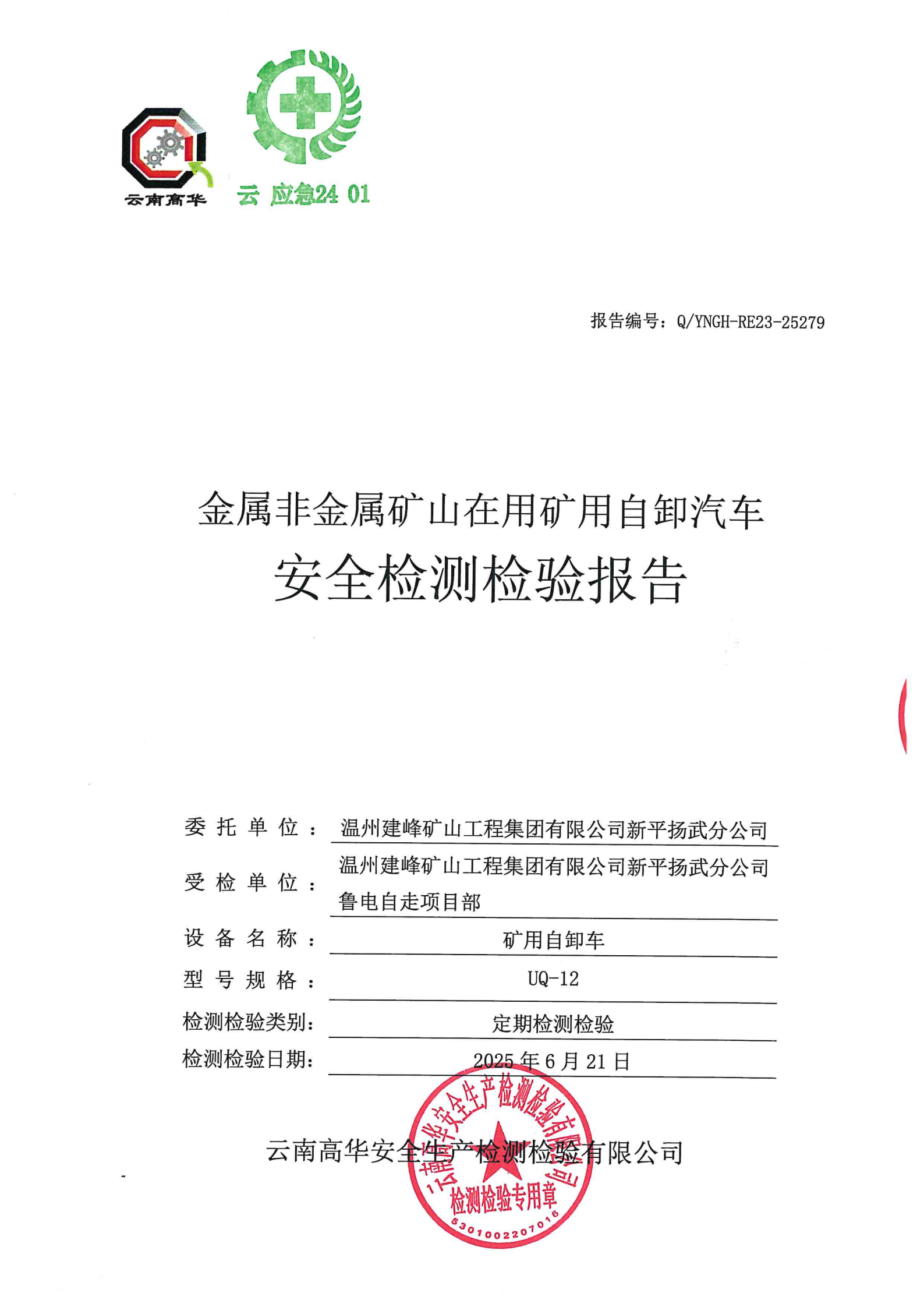 金属非金属矿山在用矿用自卸汽车安全检测检验报告