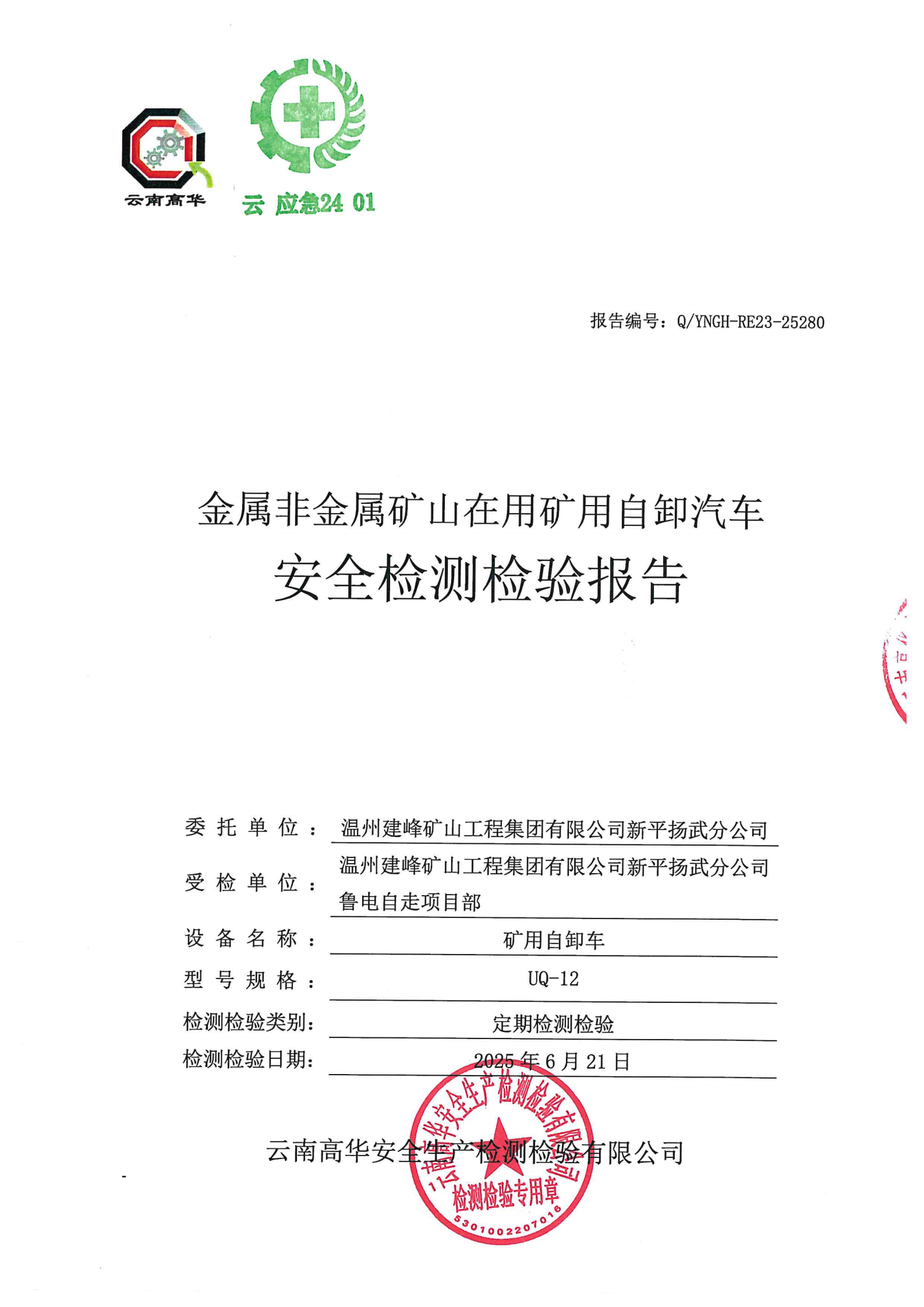 金属非金属矿山在用矿用自卸汽车安全检测检验报告