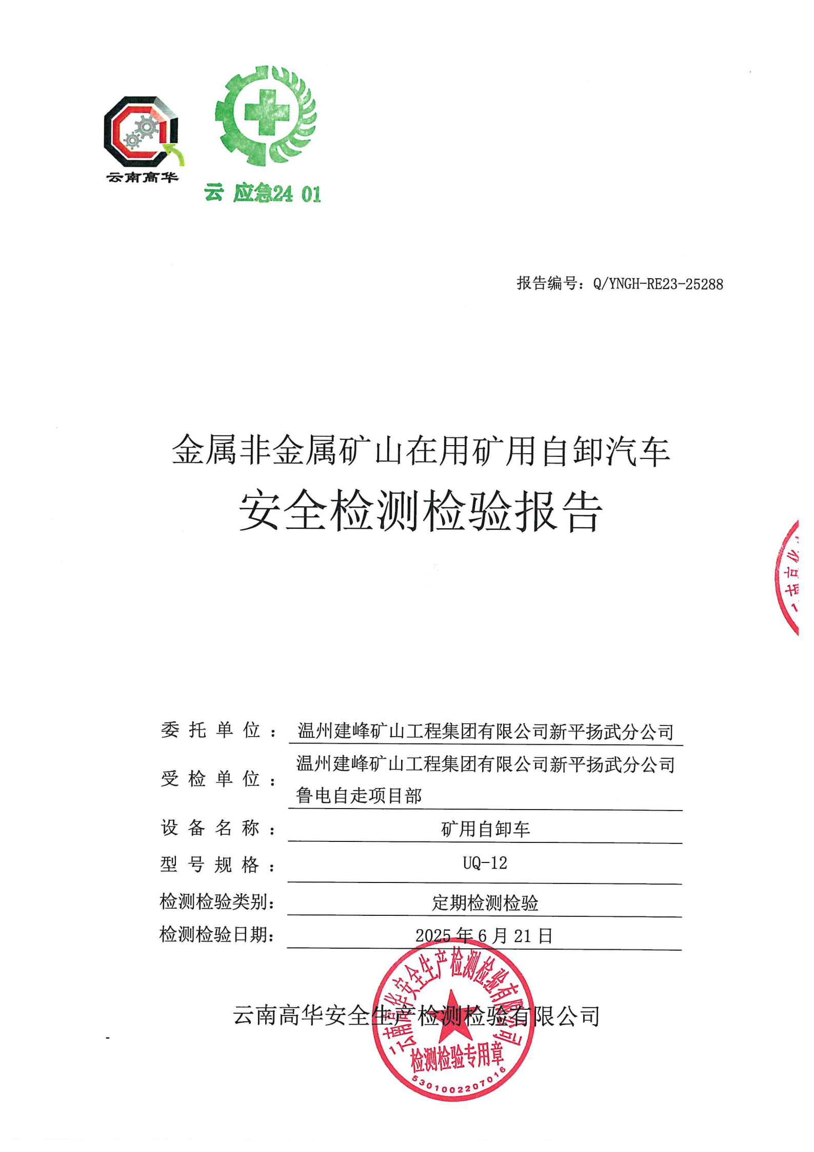 金属非金属矿山在用矿用自卸汽车安全检测检验报告