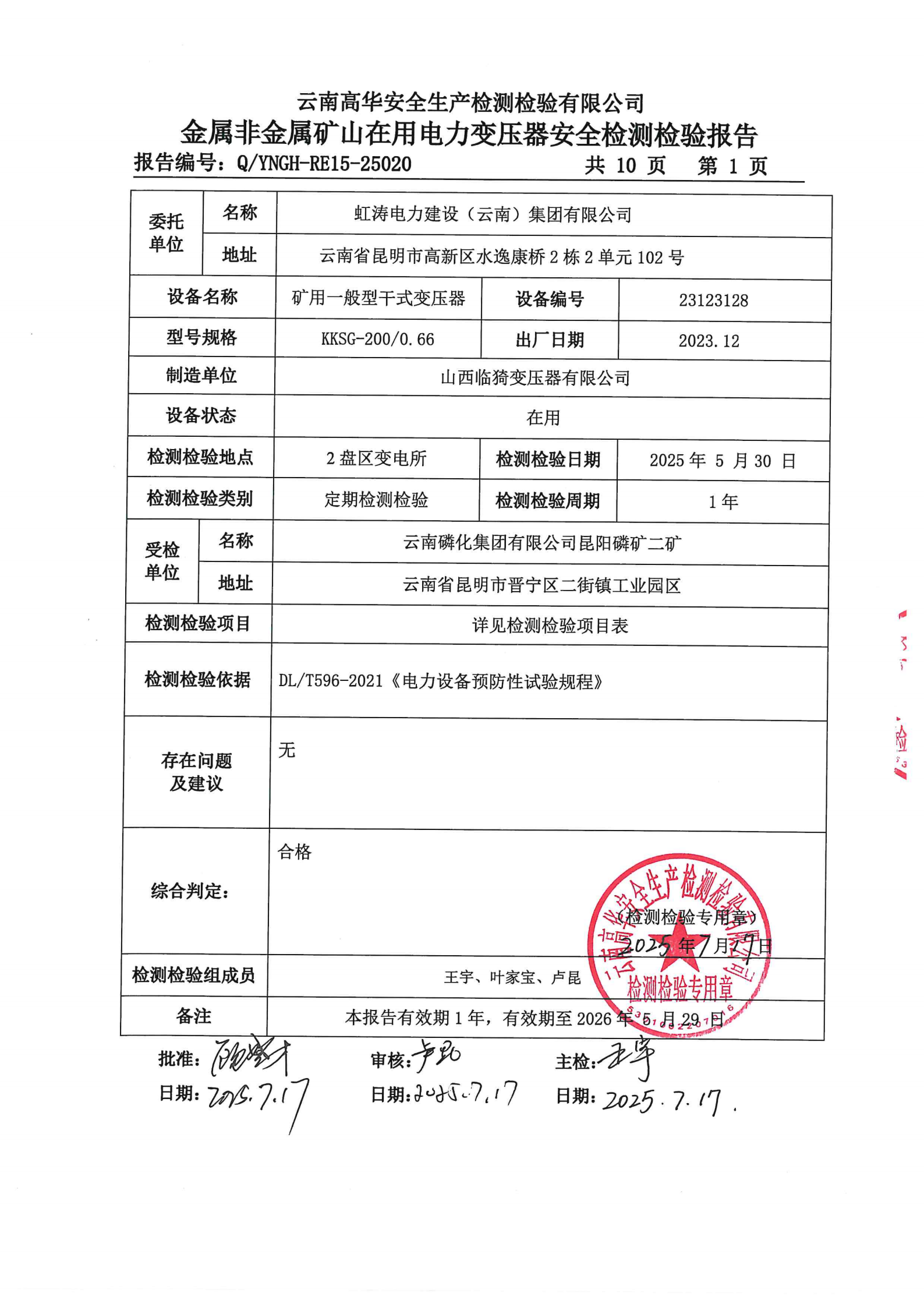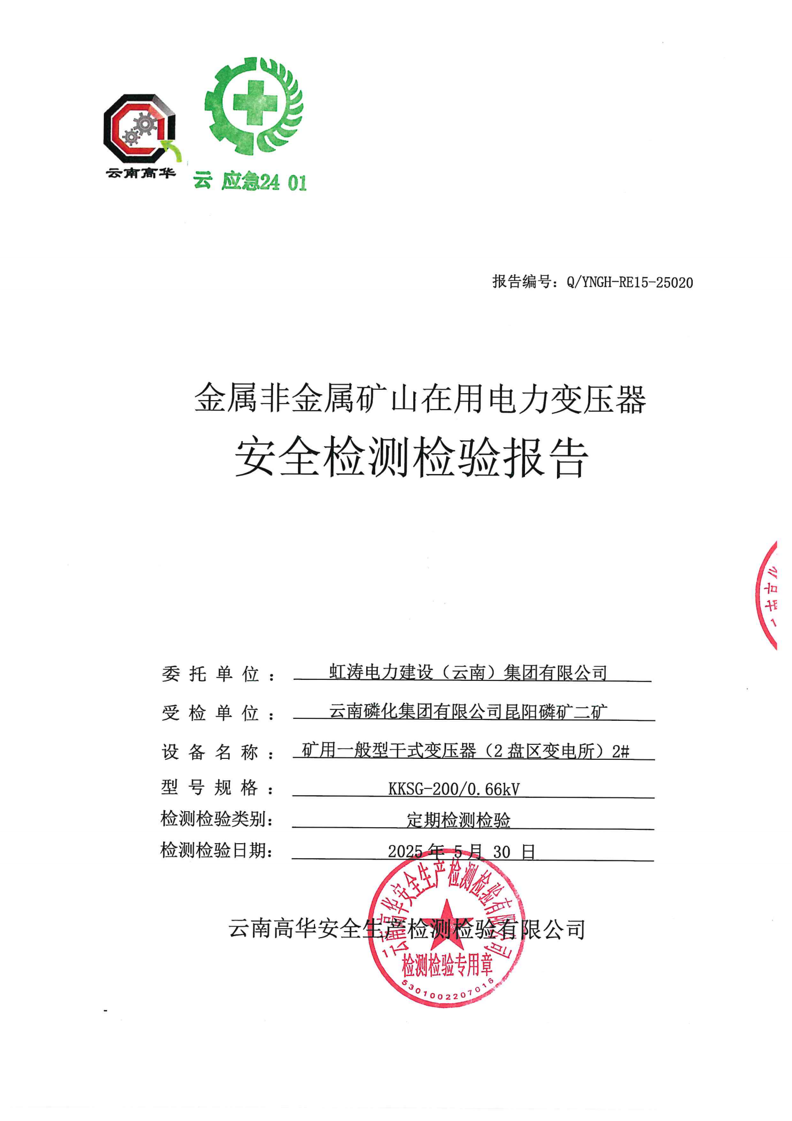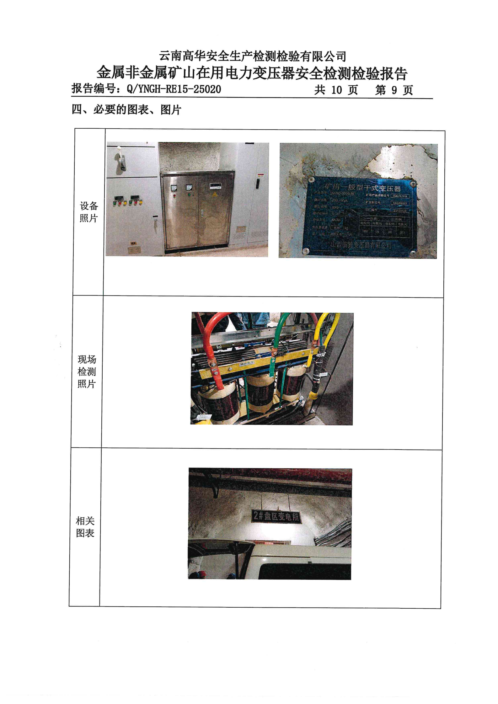 金属非金属矿山在用电力变压器安全检测检验报告