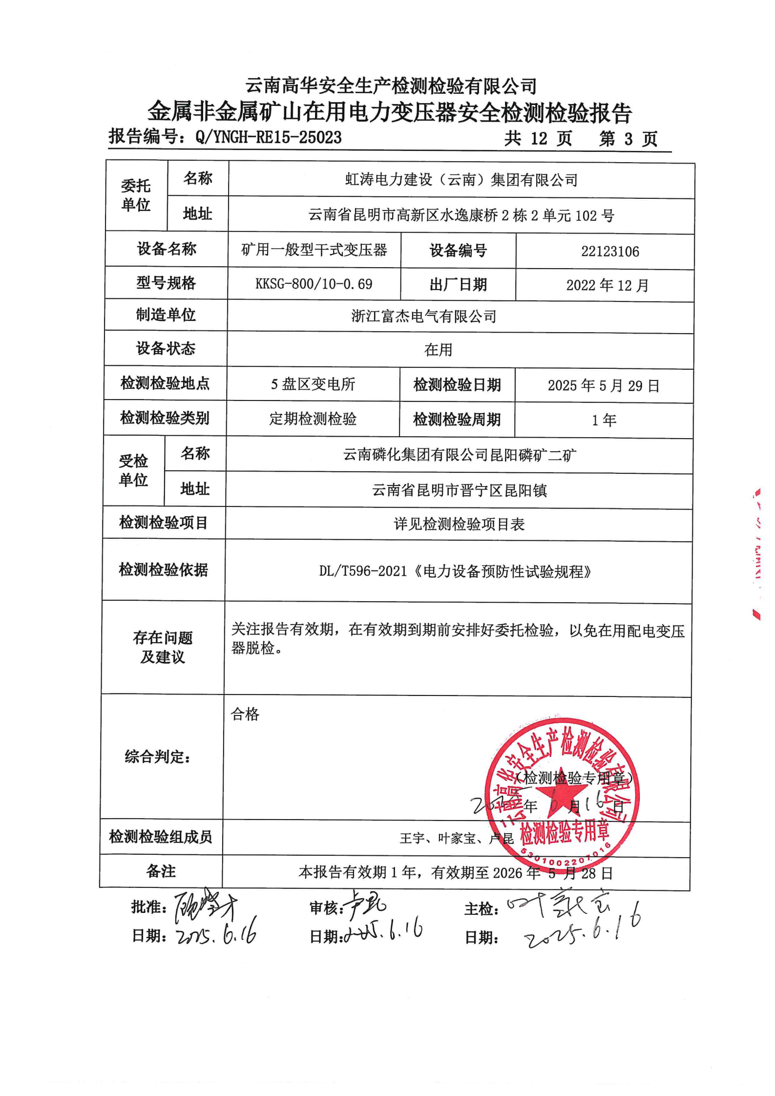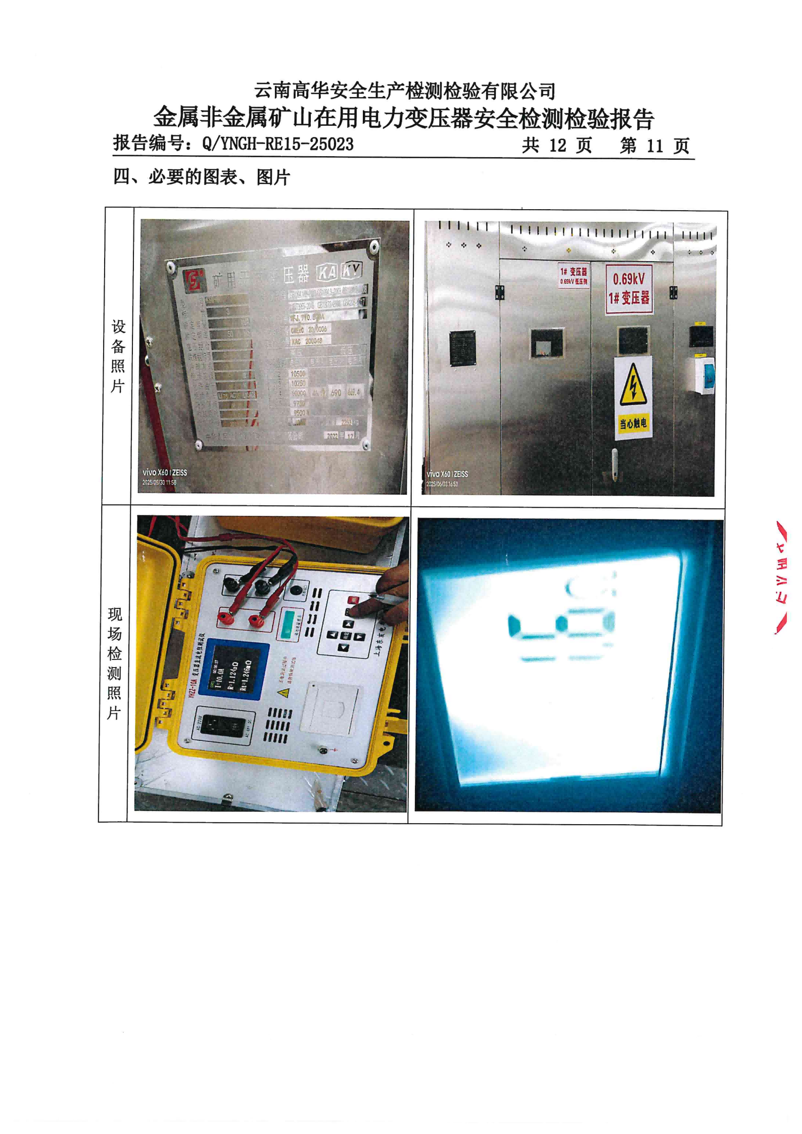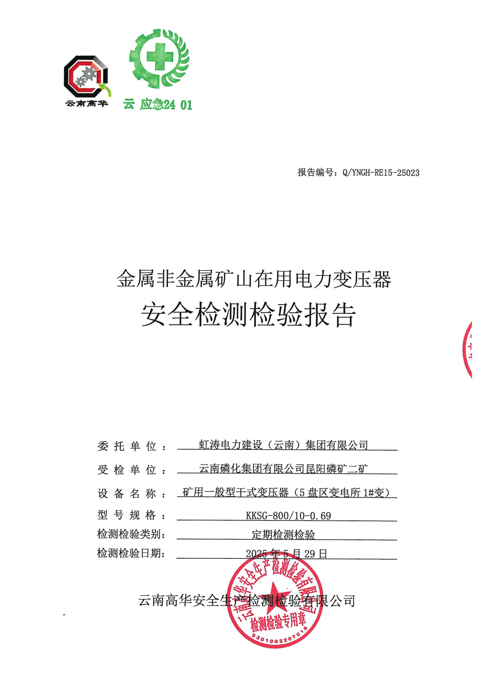 金属非金属矿山在用电力变压器安全检测检验报告