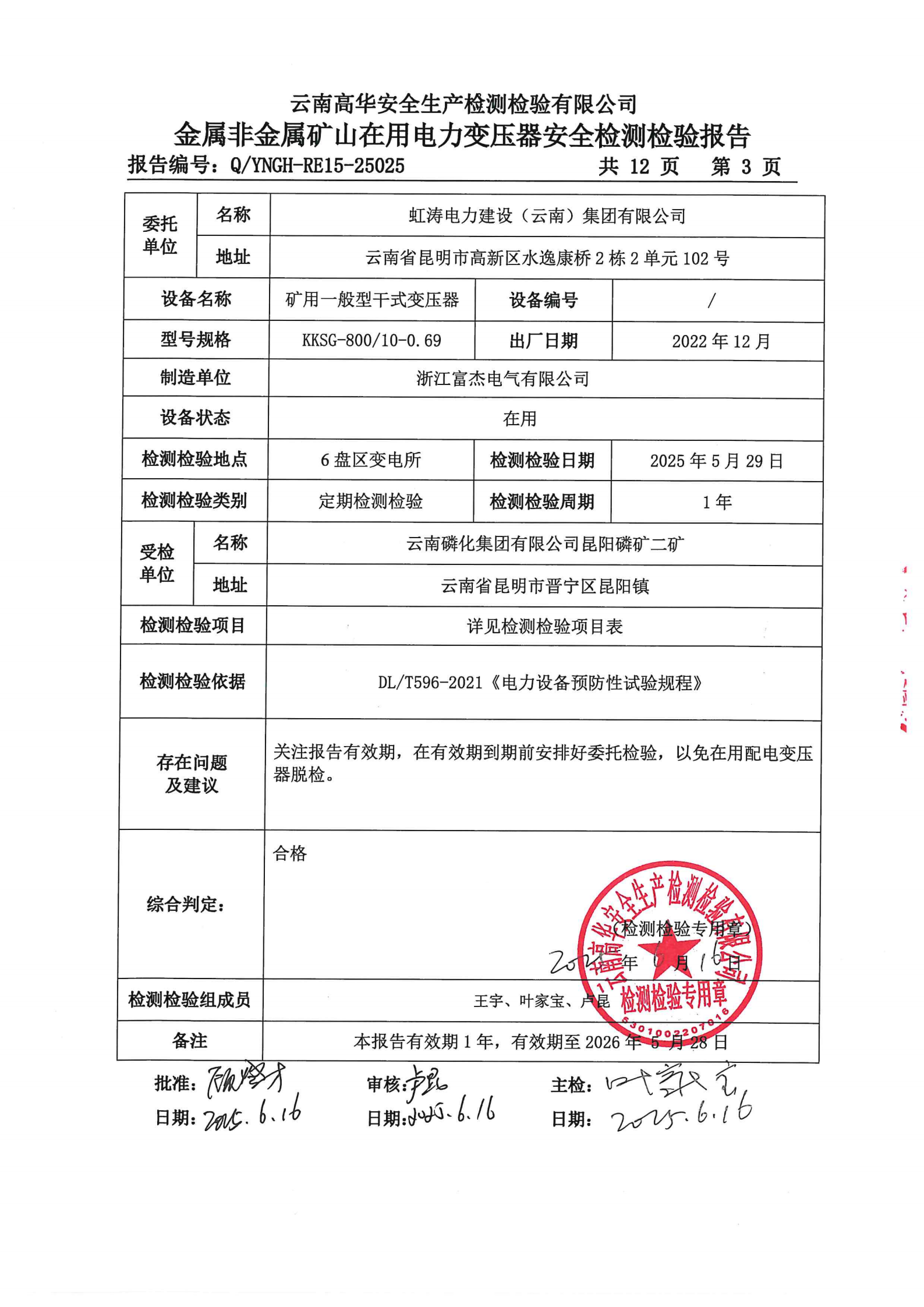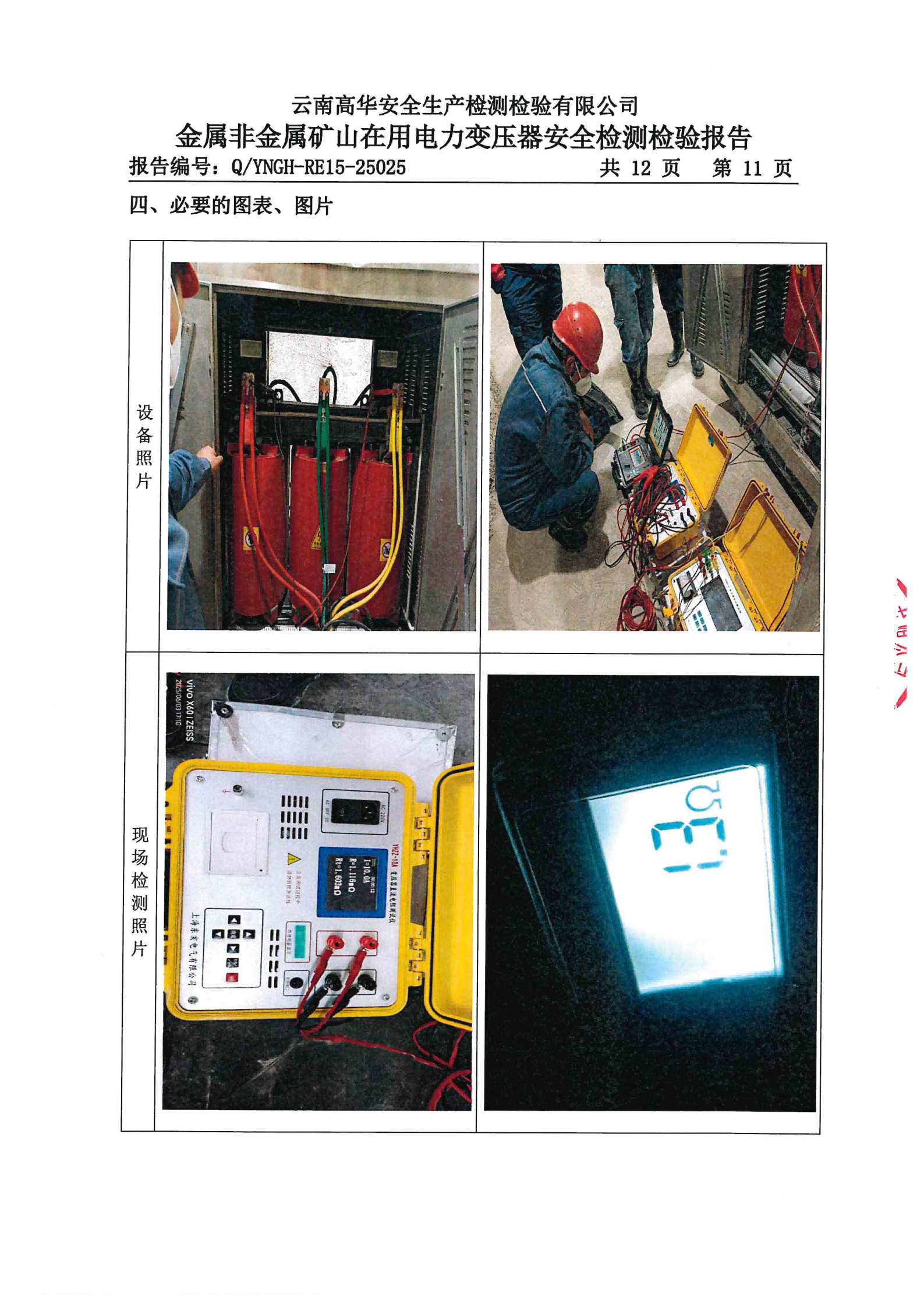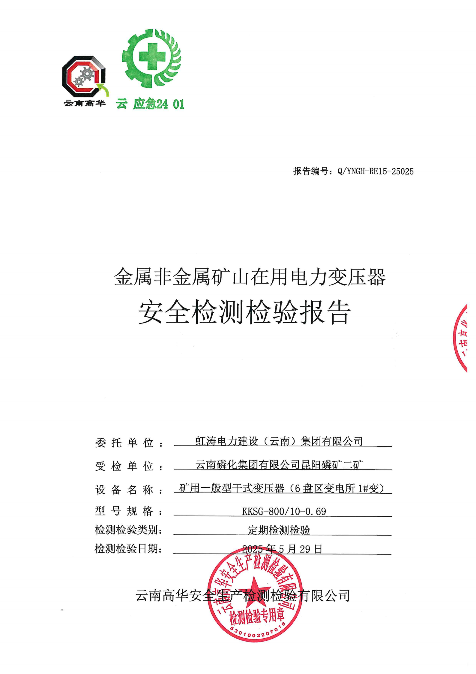 金属非金属矿山在用电力变压器安全检测检验报告