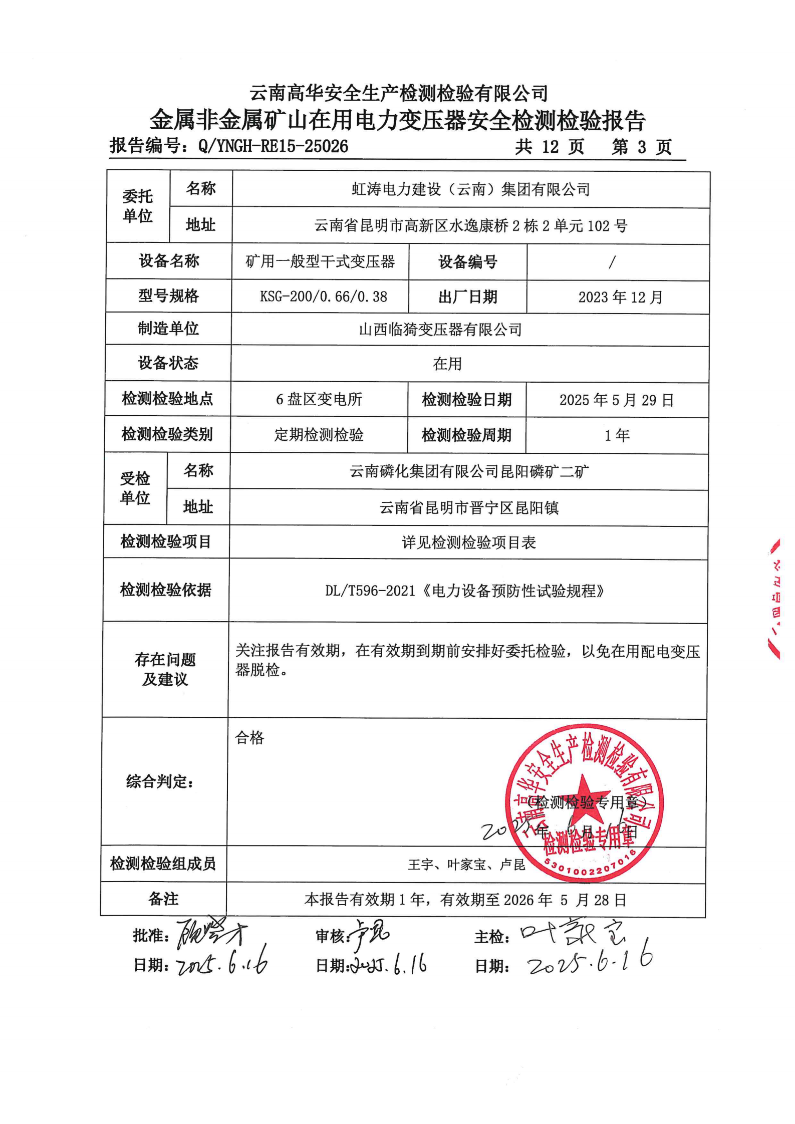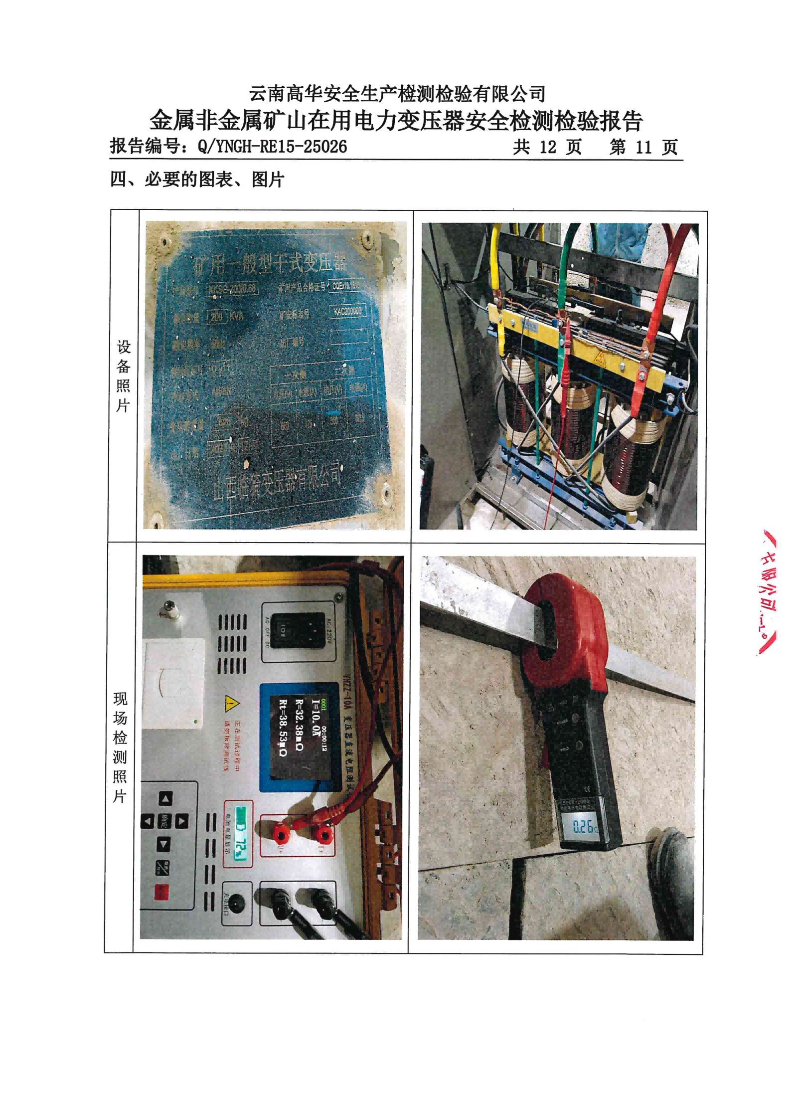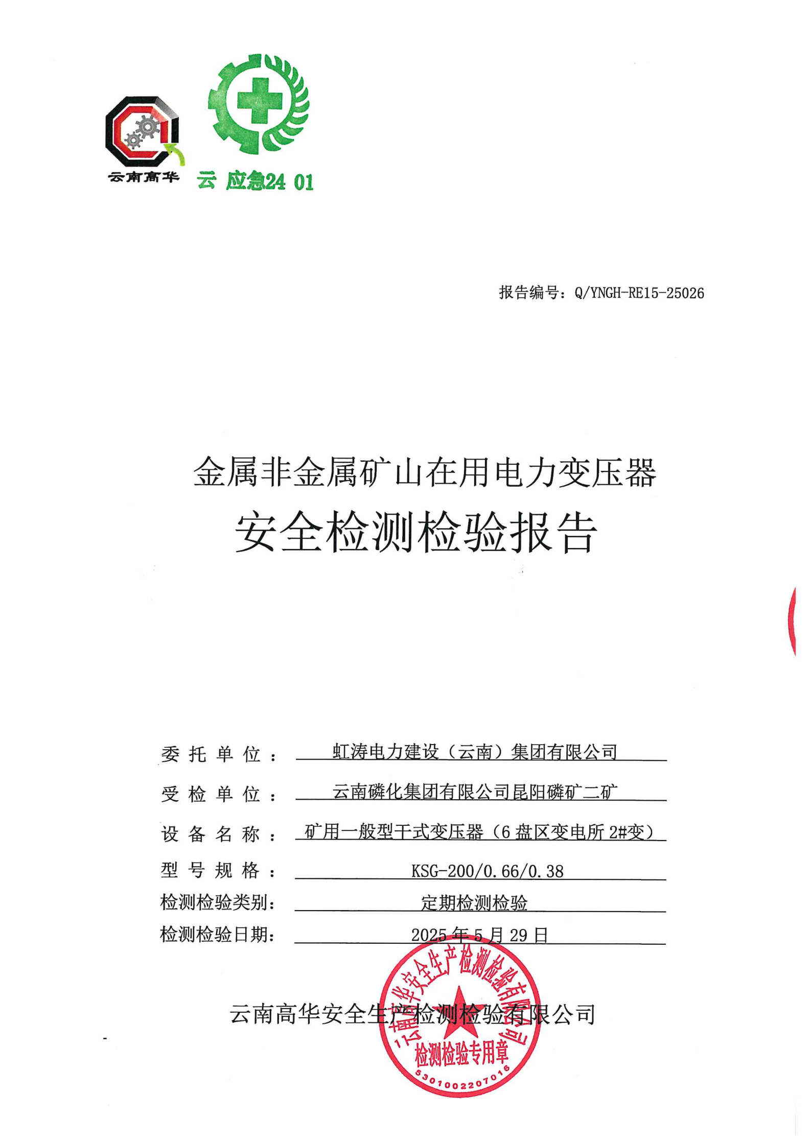 金属非金属矿山在用电力变压器安全检测检验报告
