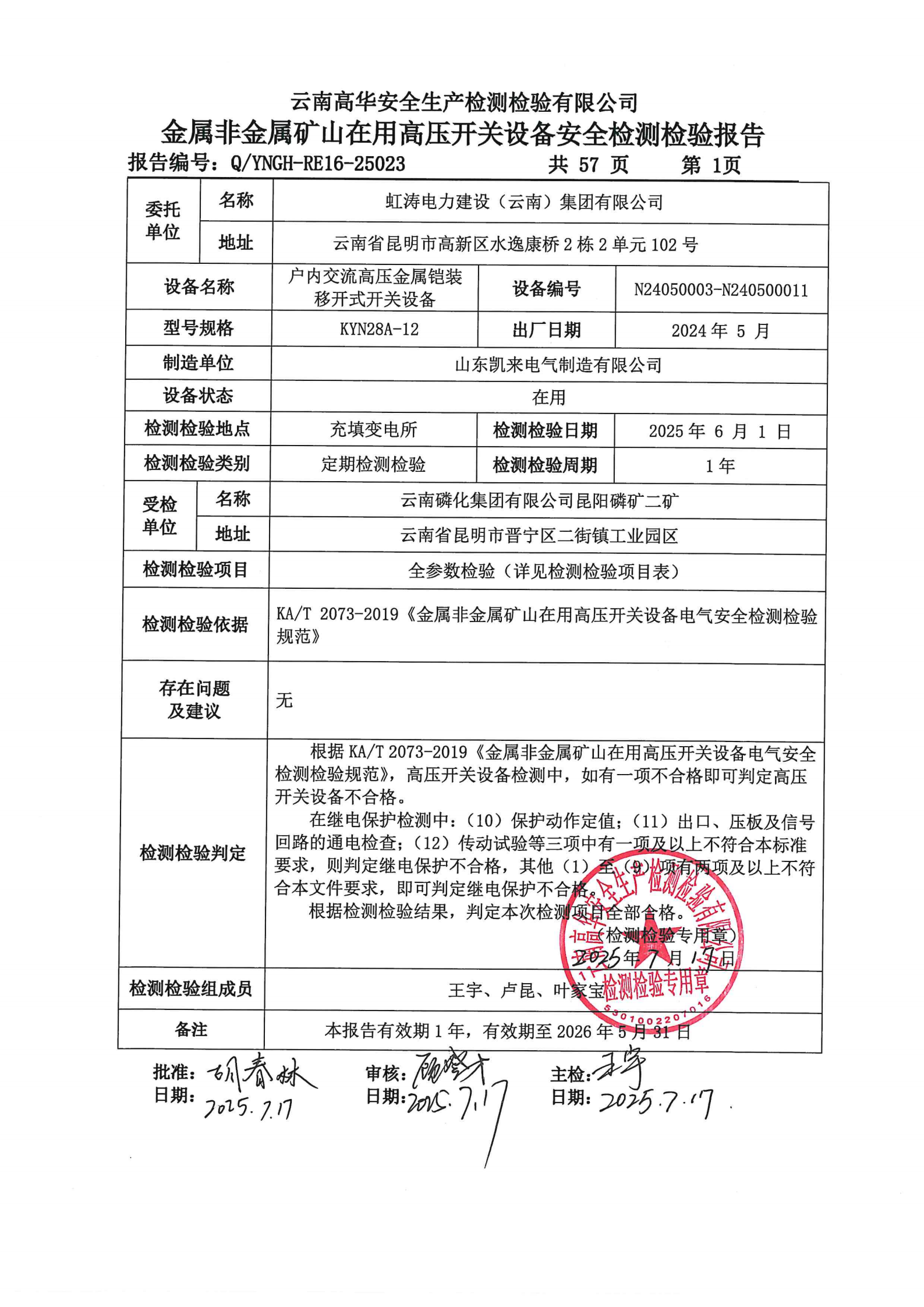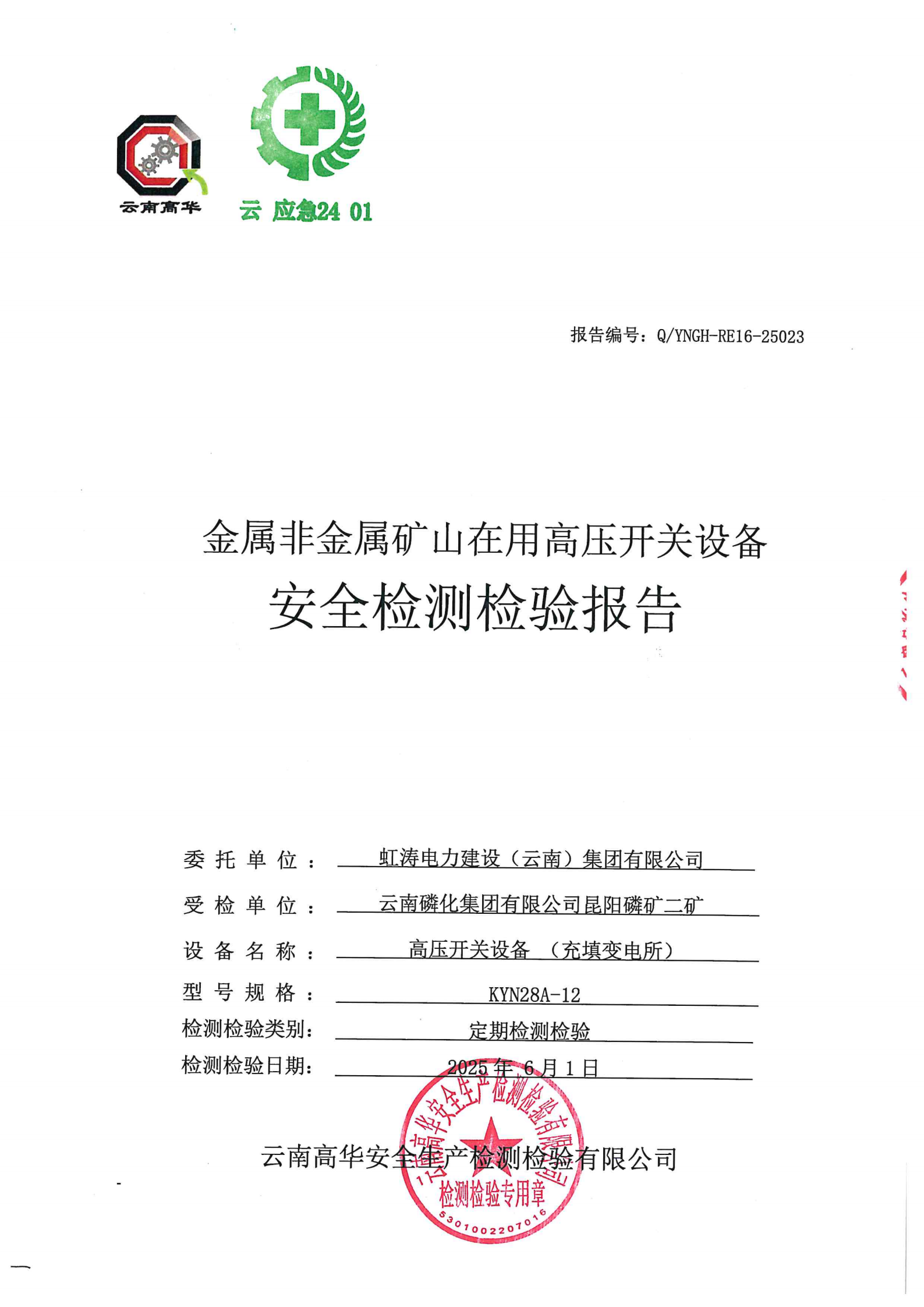 金属非金属矿山在用高压开关设备安全检测检验报告