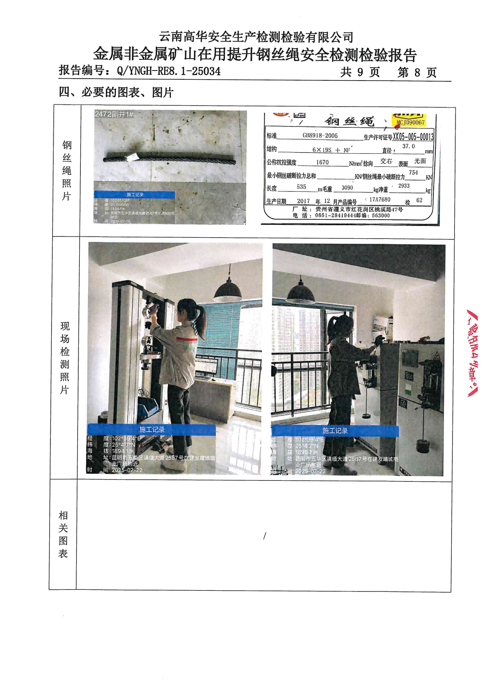 金属非金属矿山在用提升钢丝绳安全检测检验报告
