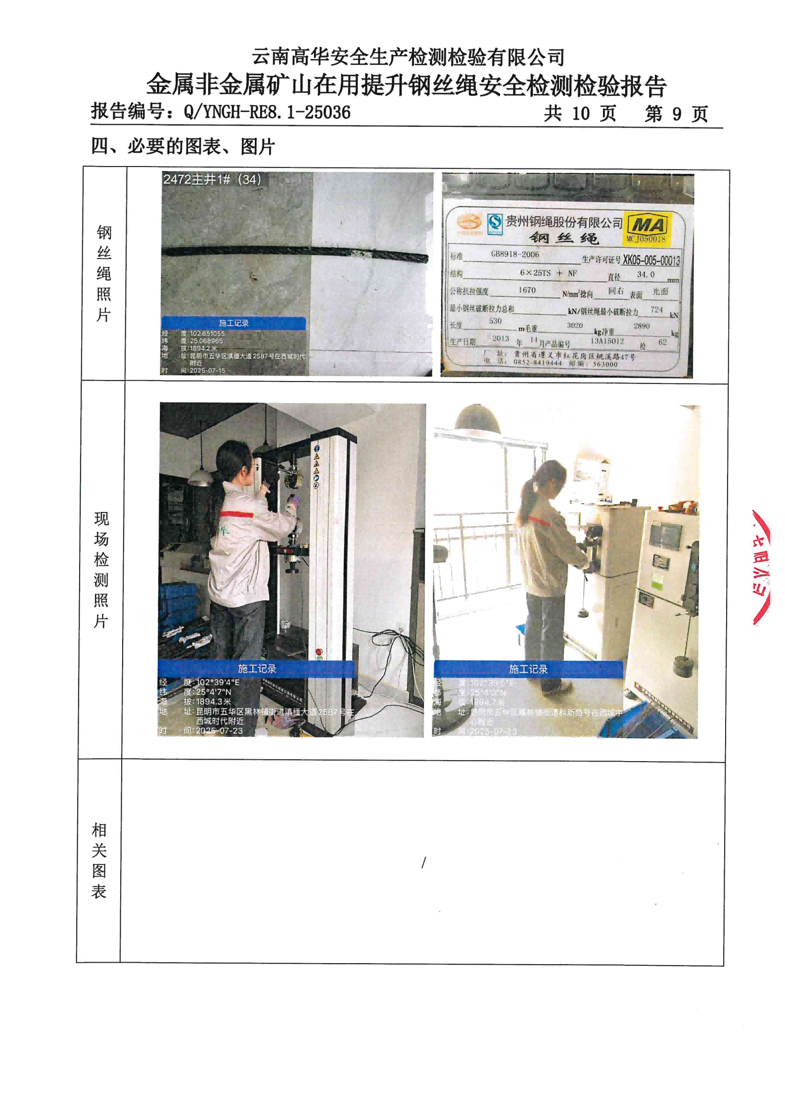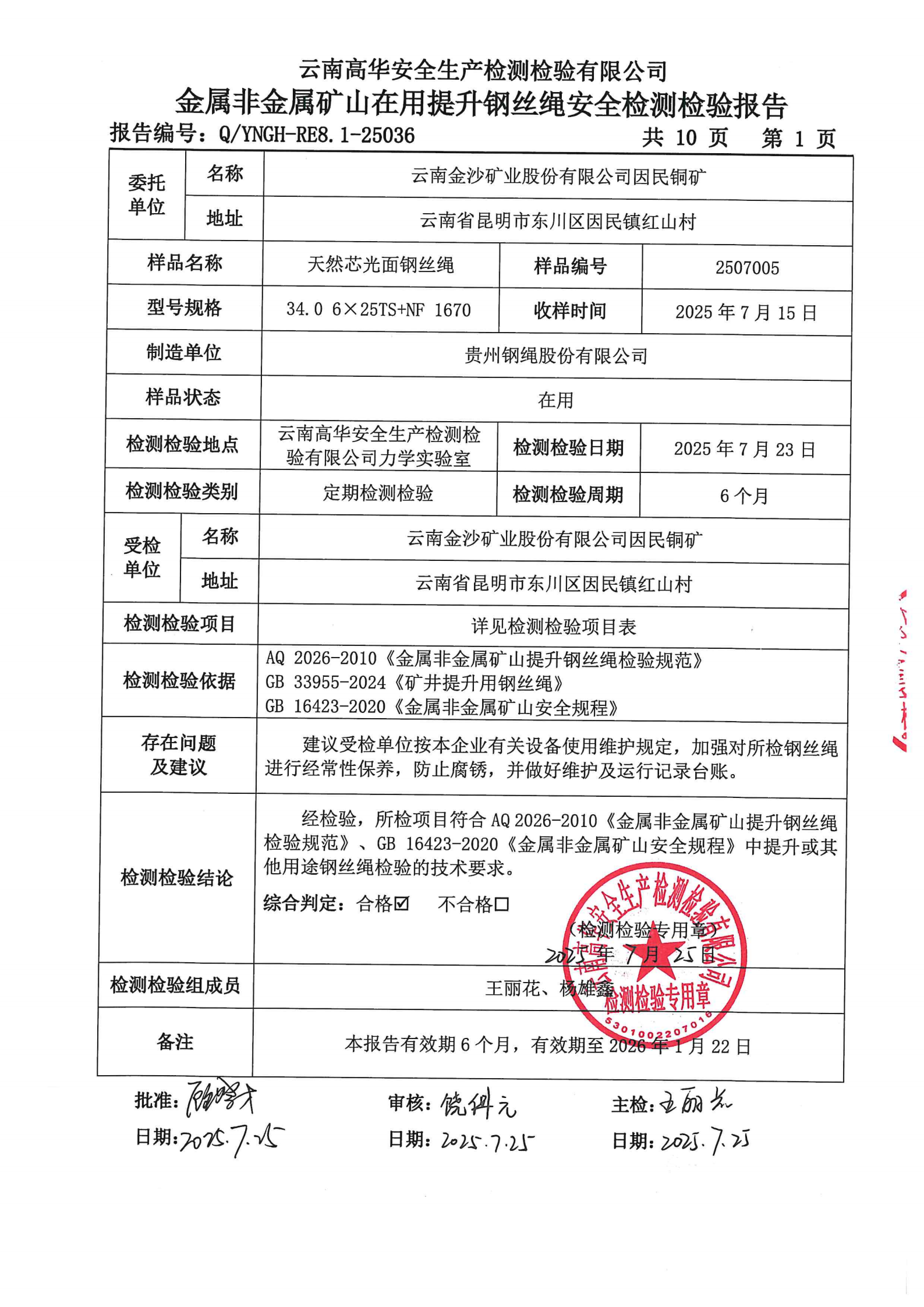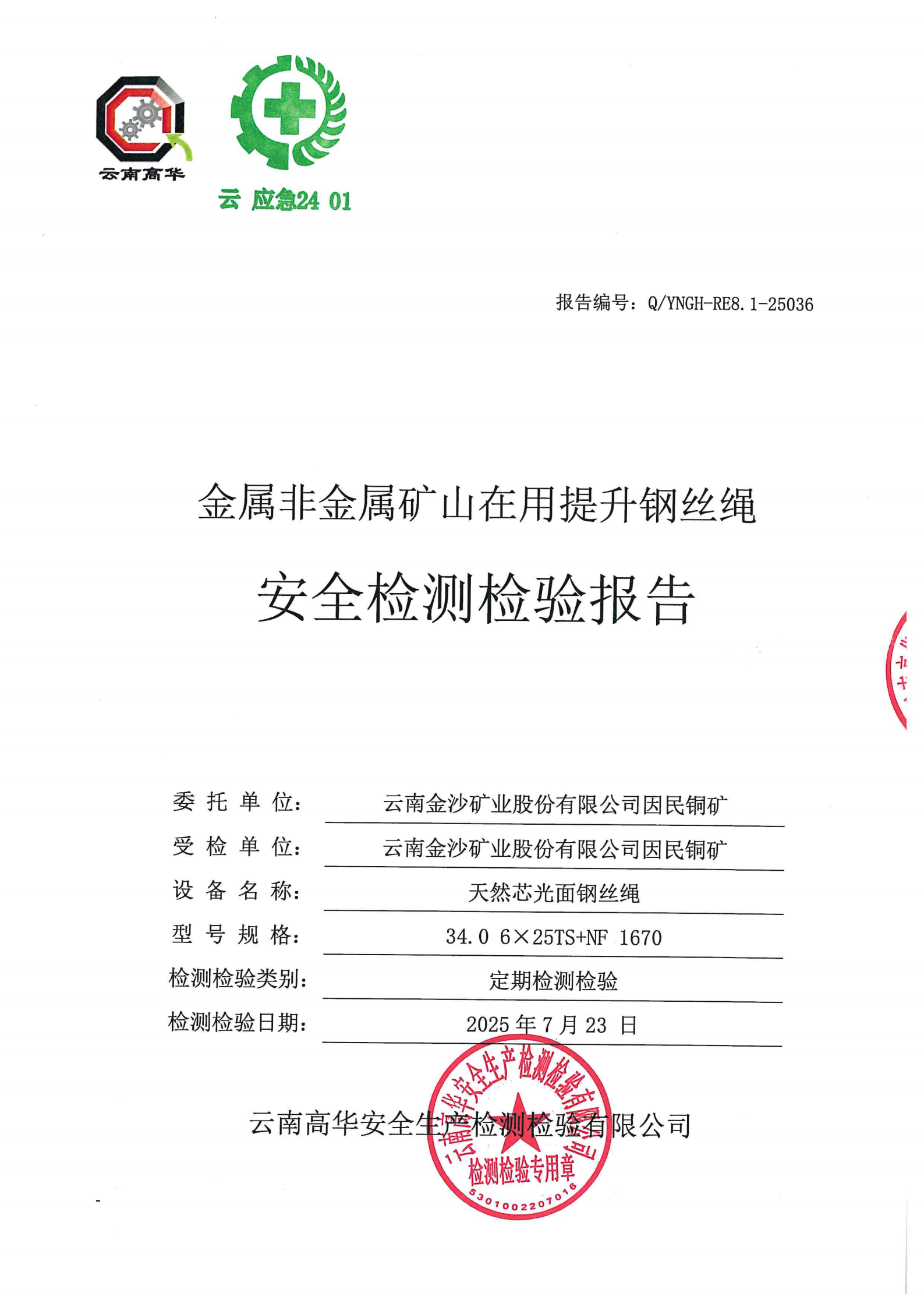 金属非金属矿山在用提升钢丝绳安全检测检验报告