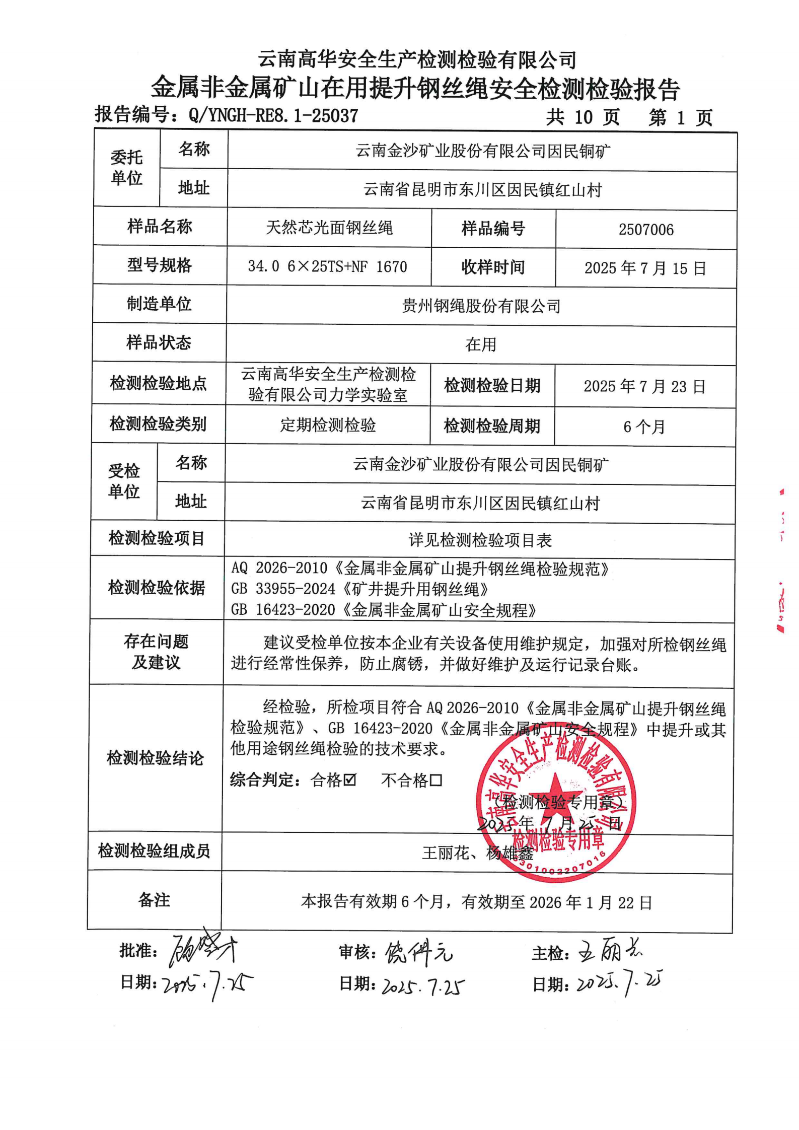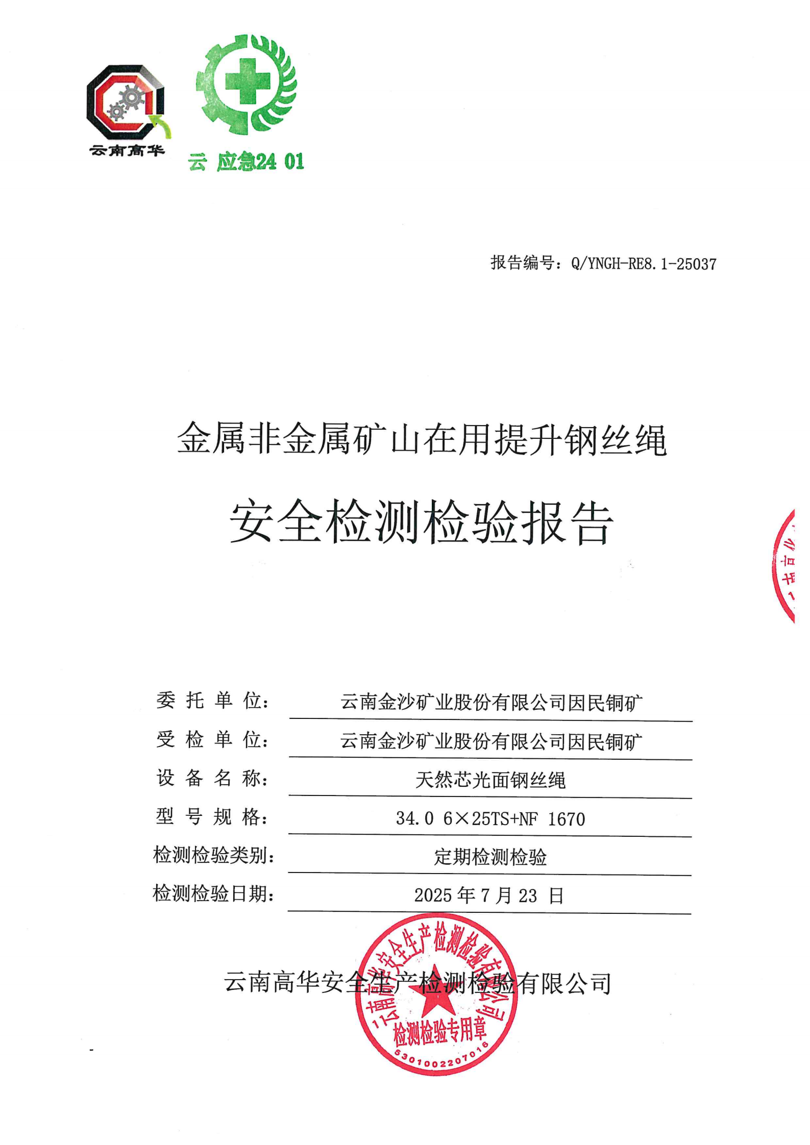 金属非金属矿山在用提升钢丝绳安全检测检验报告