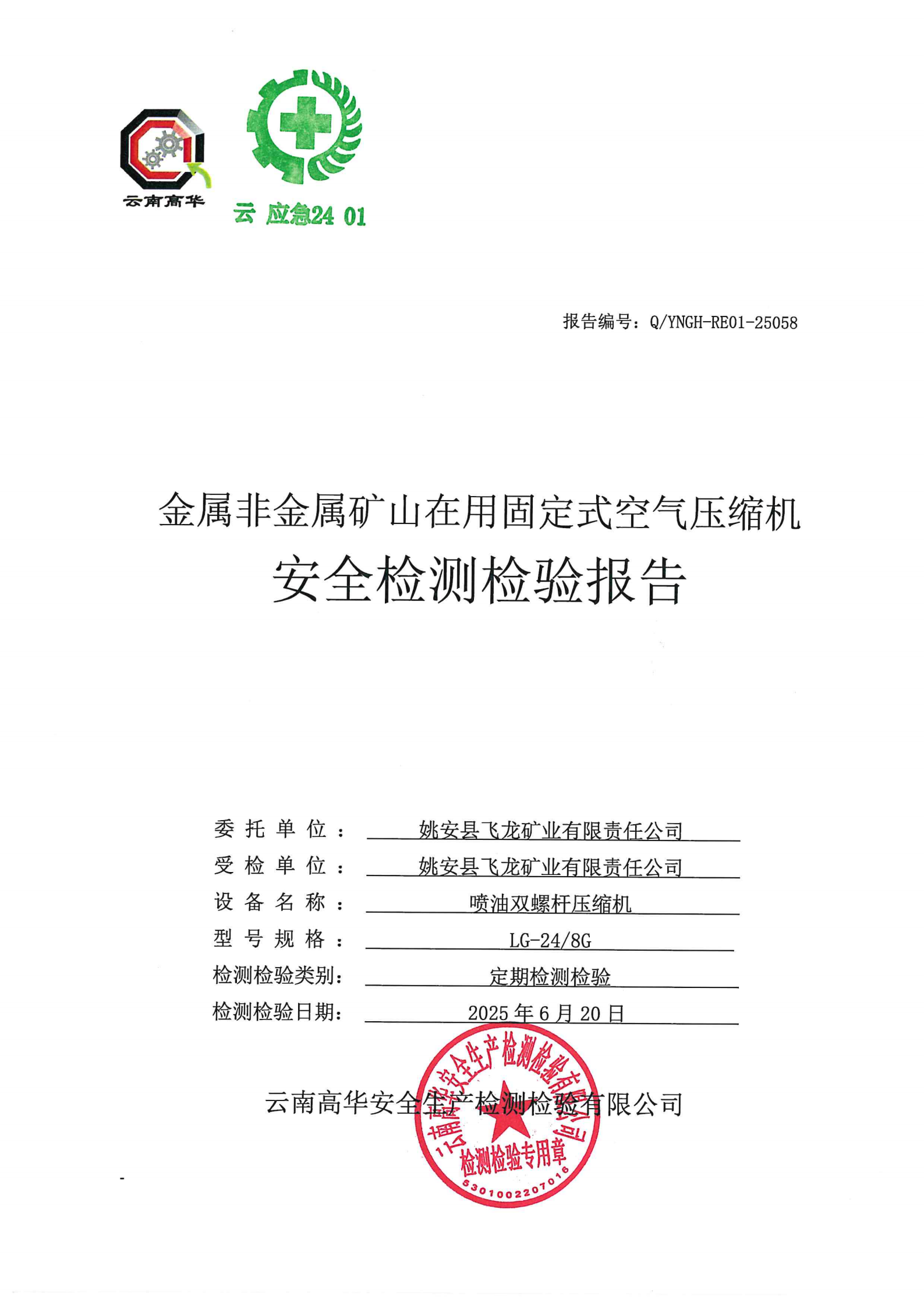 金属非金属矿山在用固定式空气压缩机安全检测检验报告