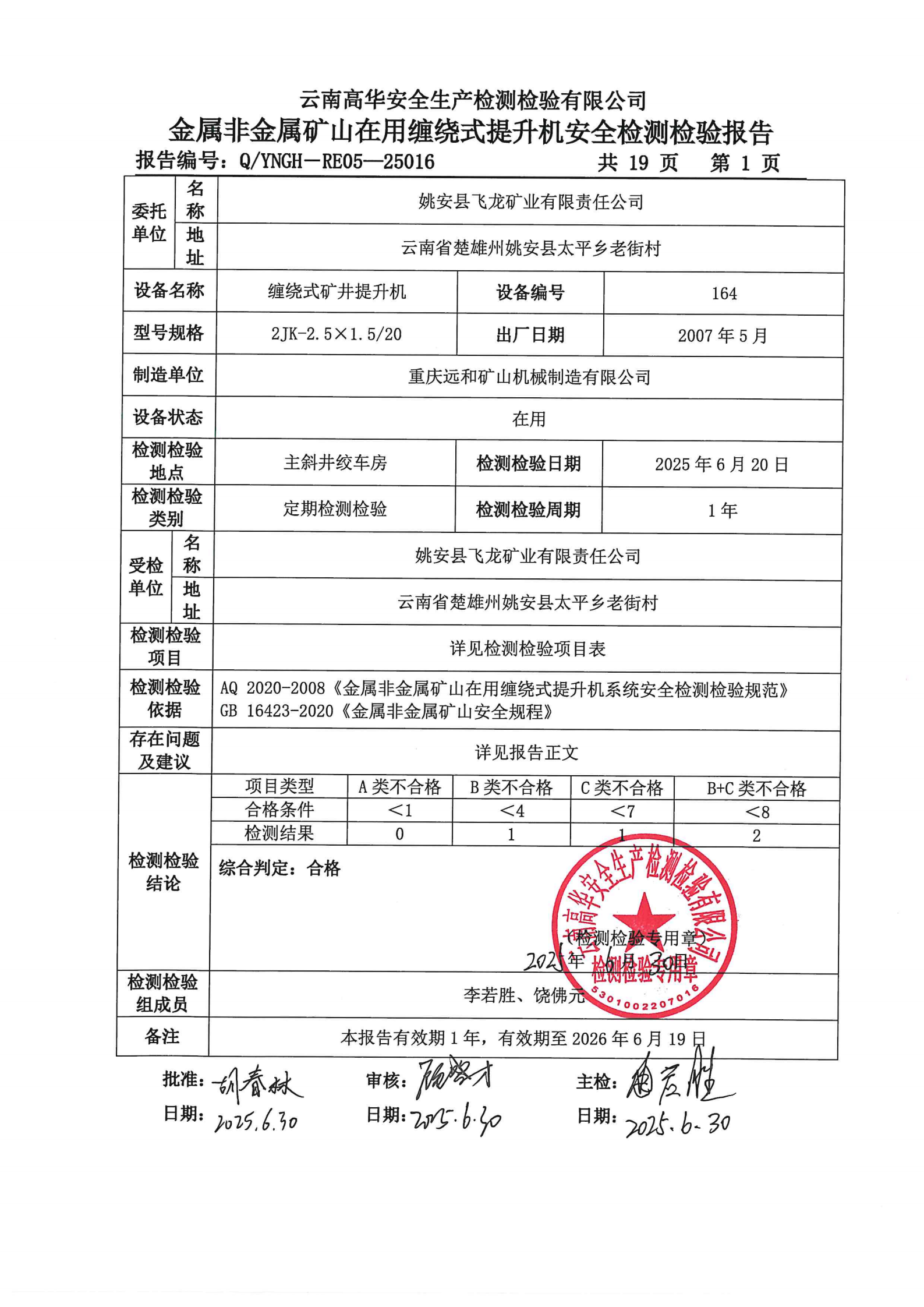 金属非金属矿山在用缠绕式提升机安全检测检验报告