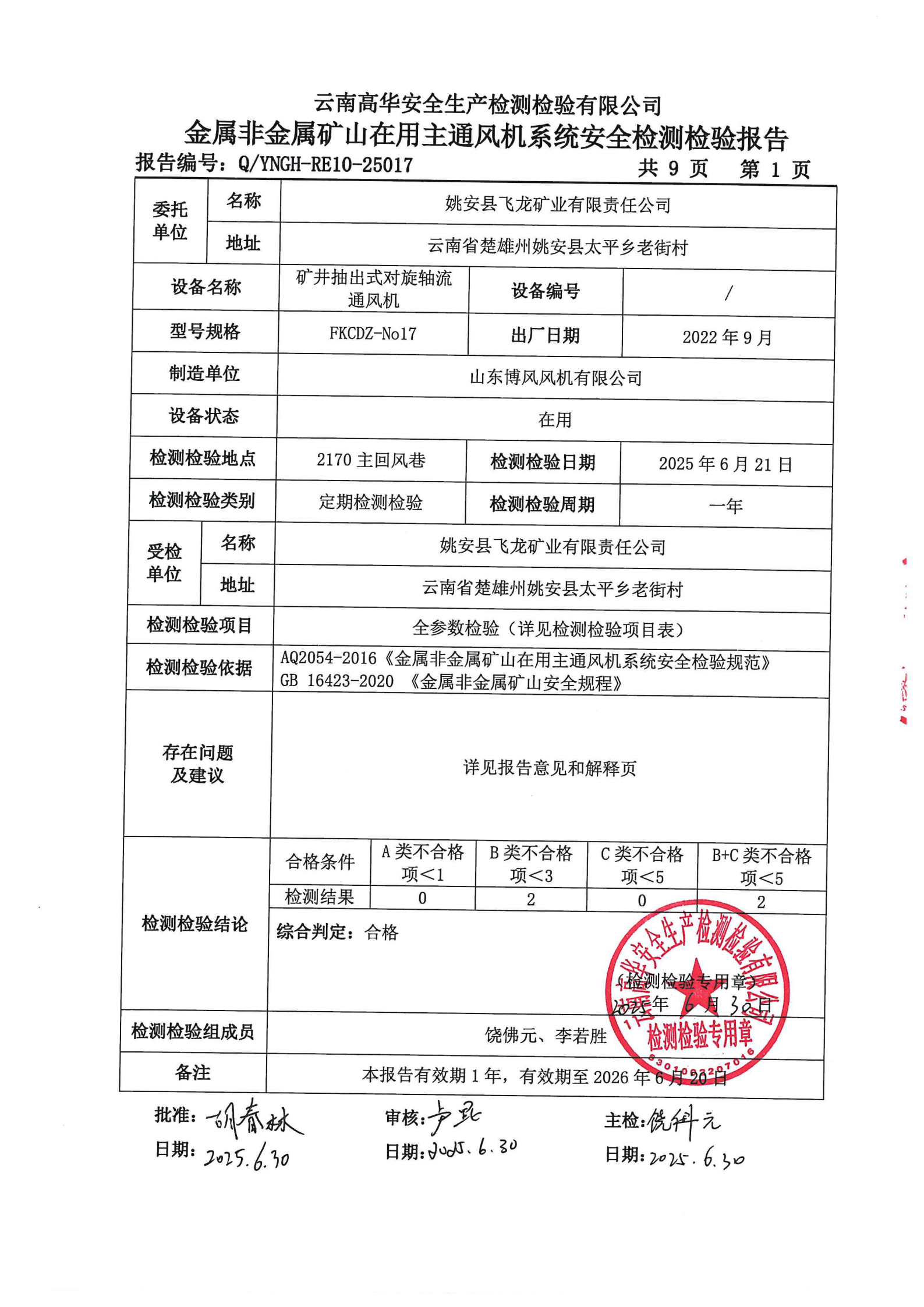 金属非金属矿山在用主通风机系统安全检测检验报告