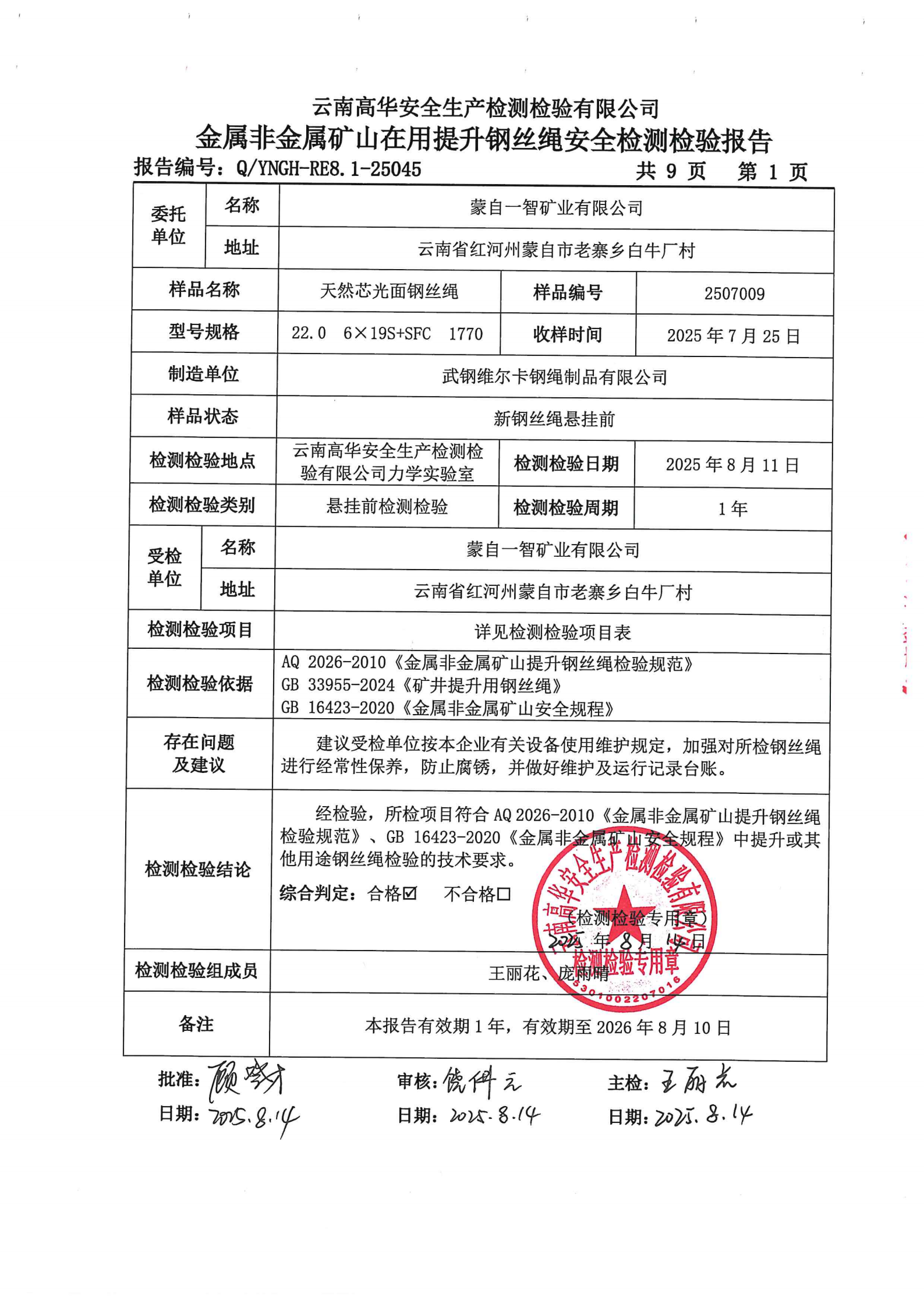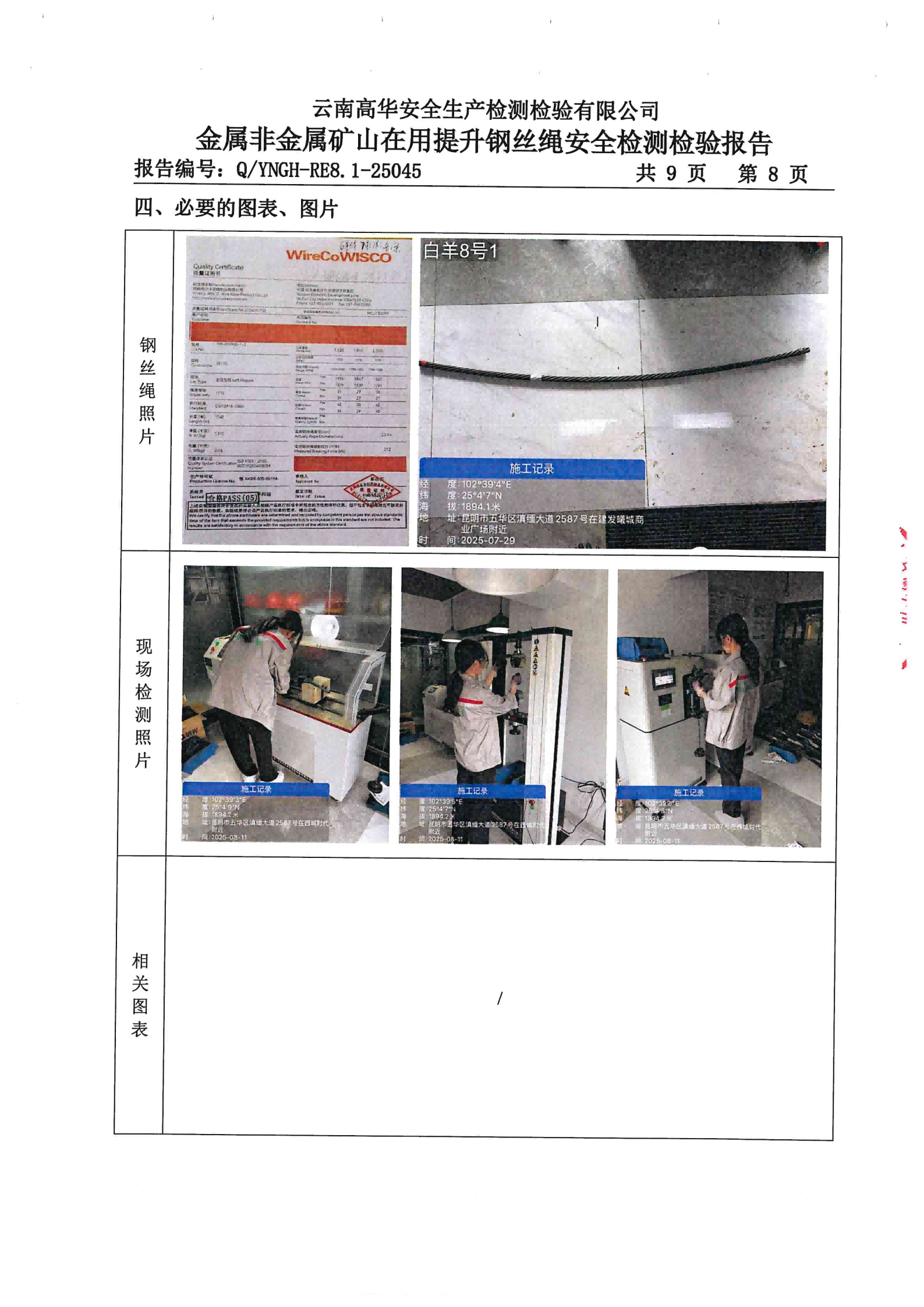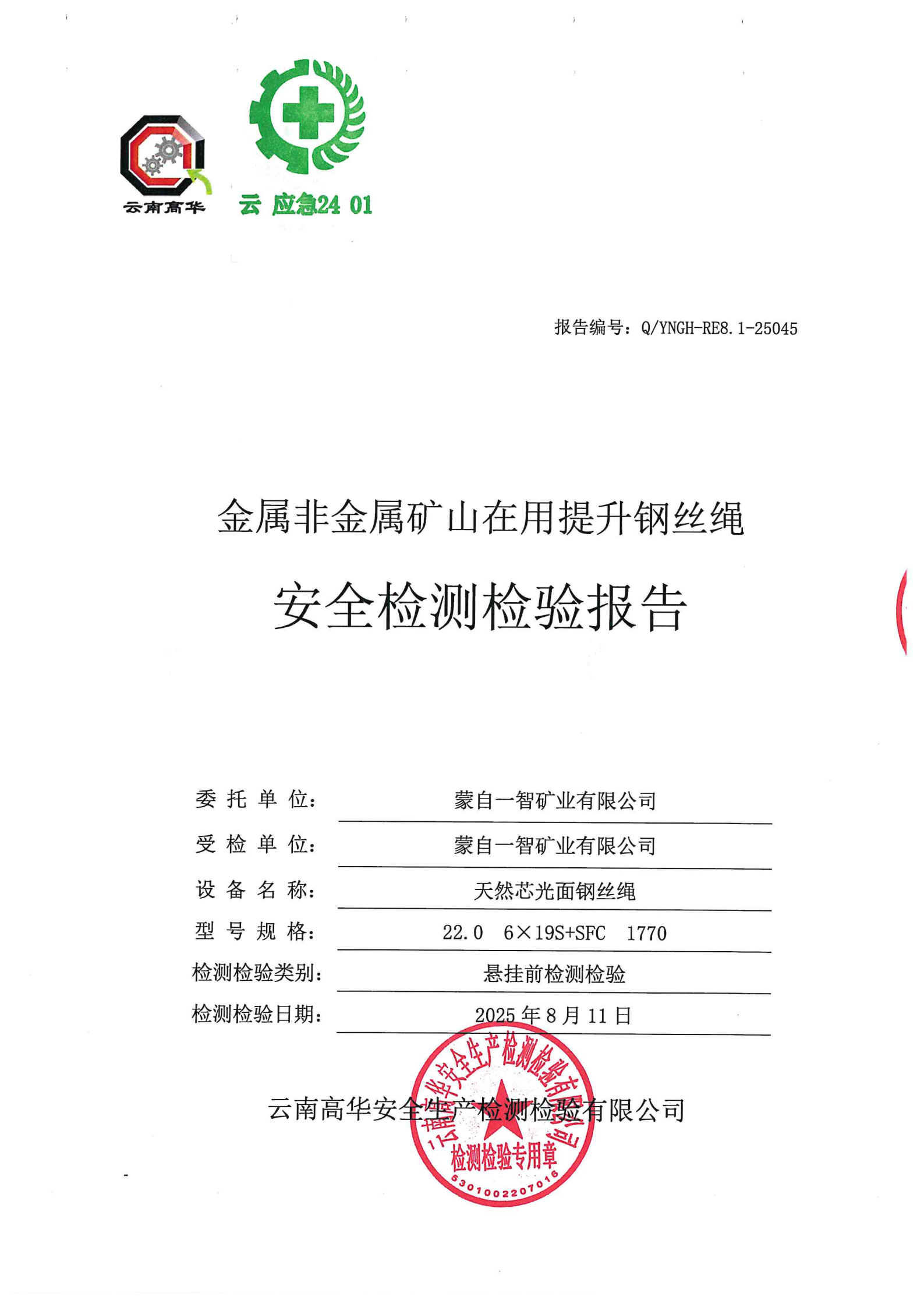 金属非金属矿山在用提升钢丝绳安全检测检验报告