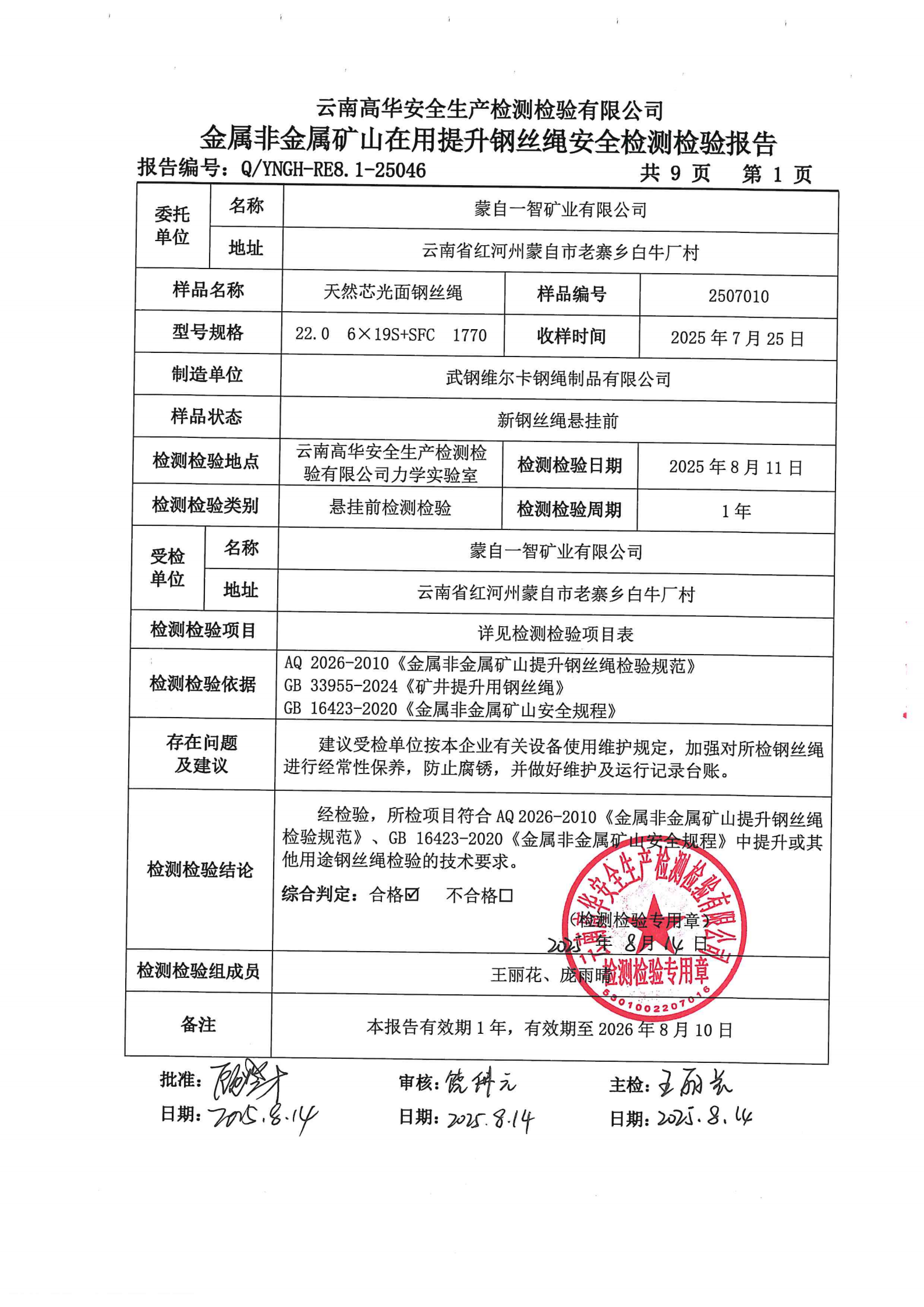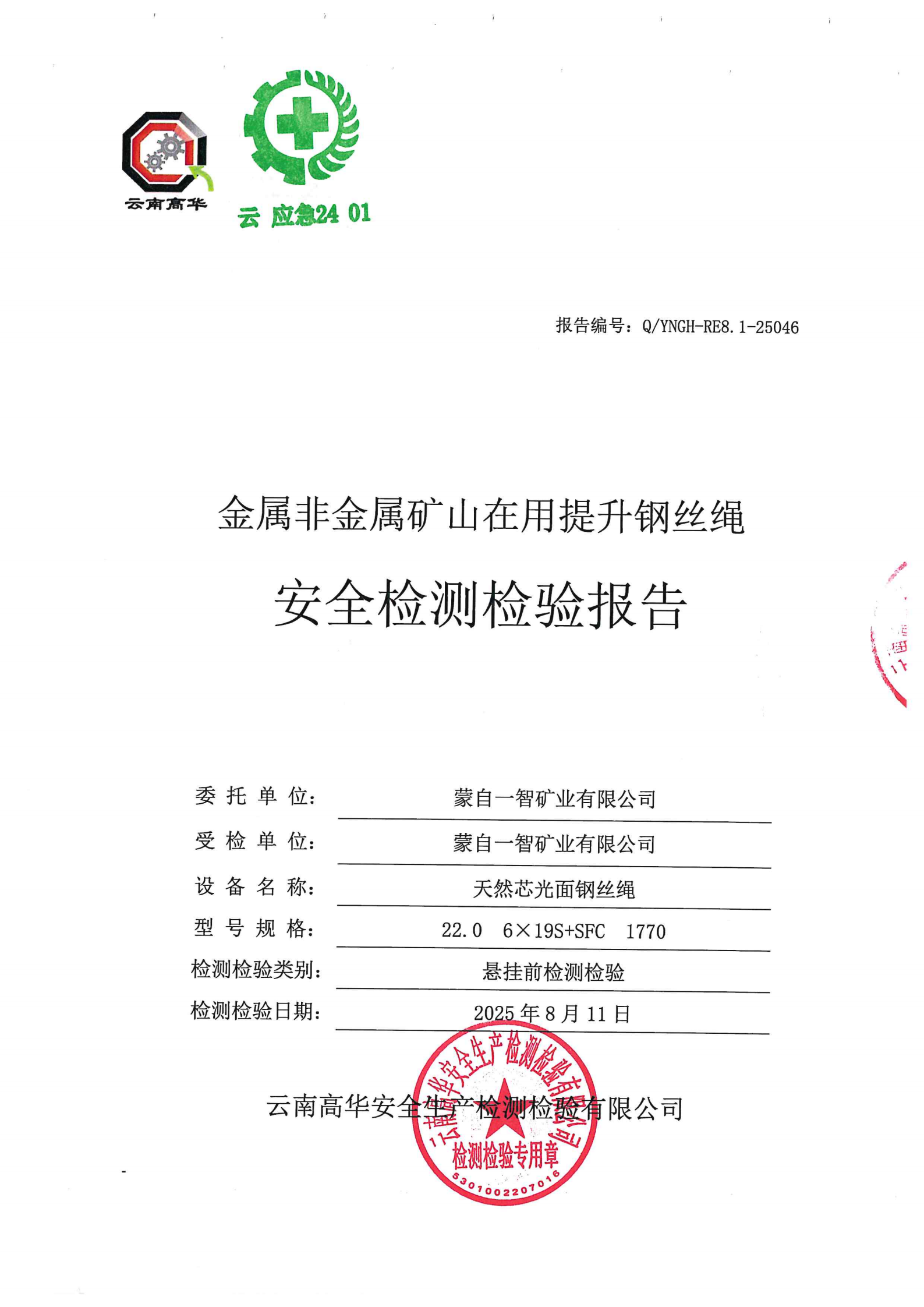 金属非金属矿山在用提升钢丝绳安全检测检验报告