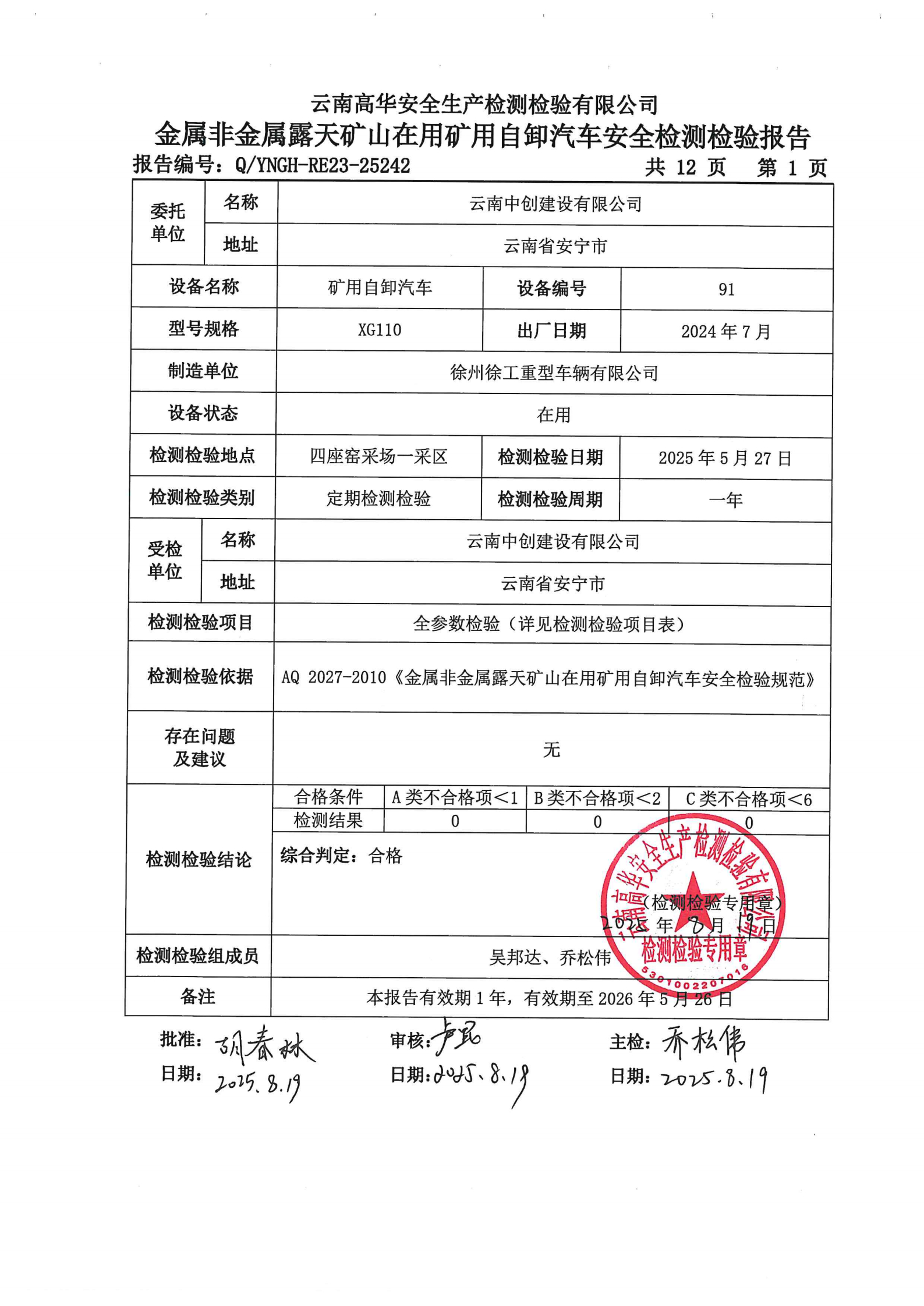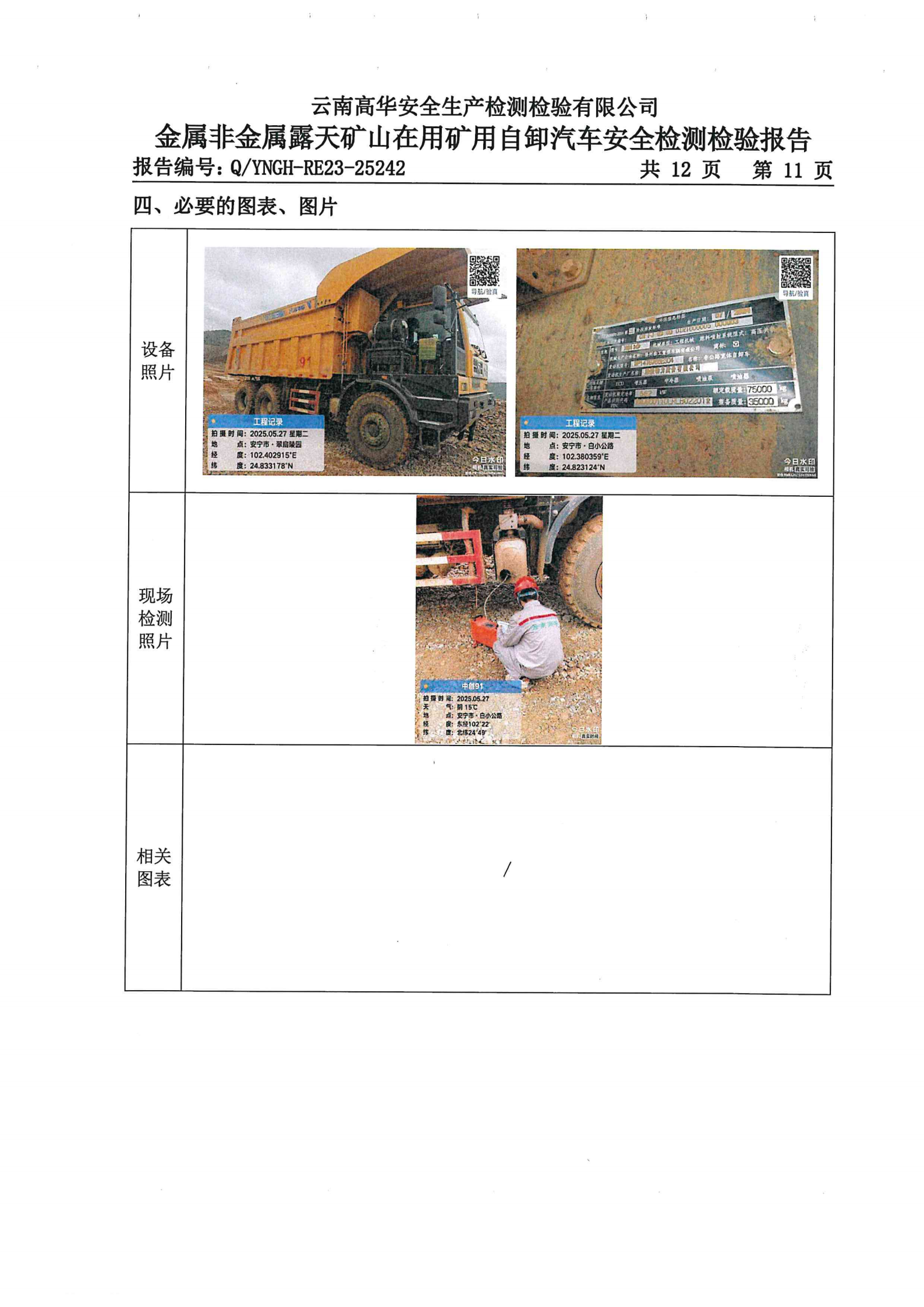 金属非金属露天矿山在用矿用自卸汽车安全检测检验报告