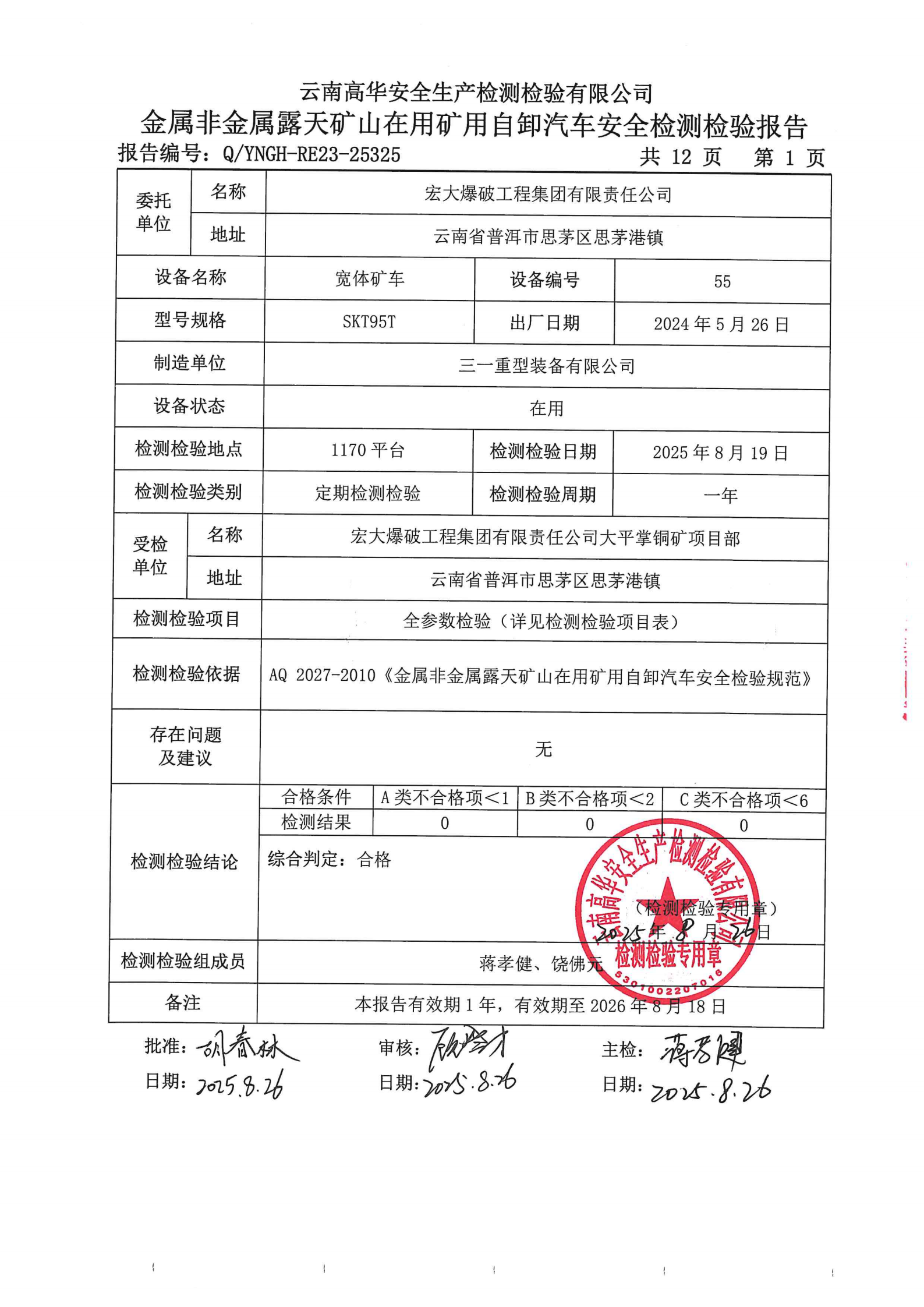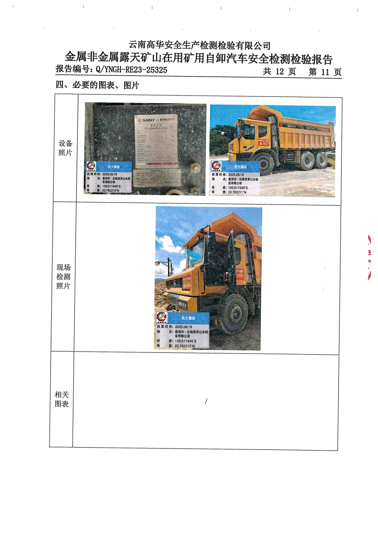 金属非金属露天矿山在用矿用自卸汽车安全检测检验报告