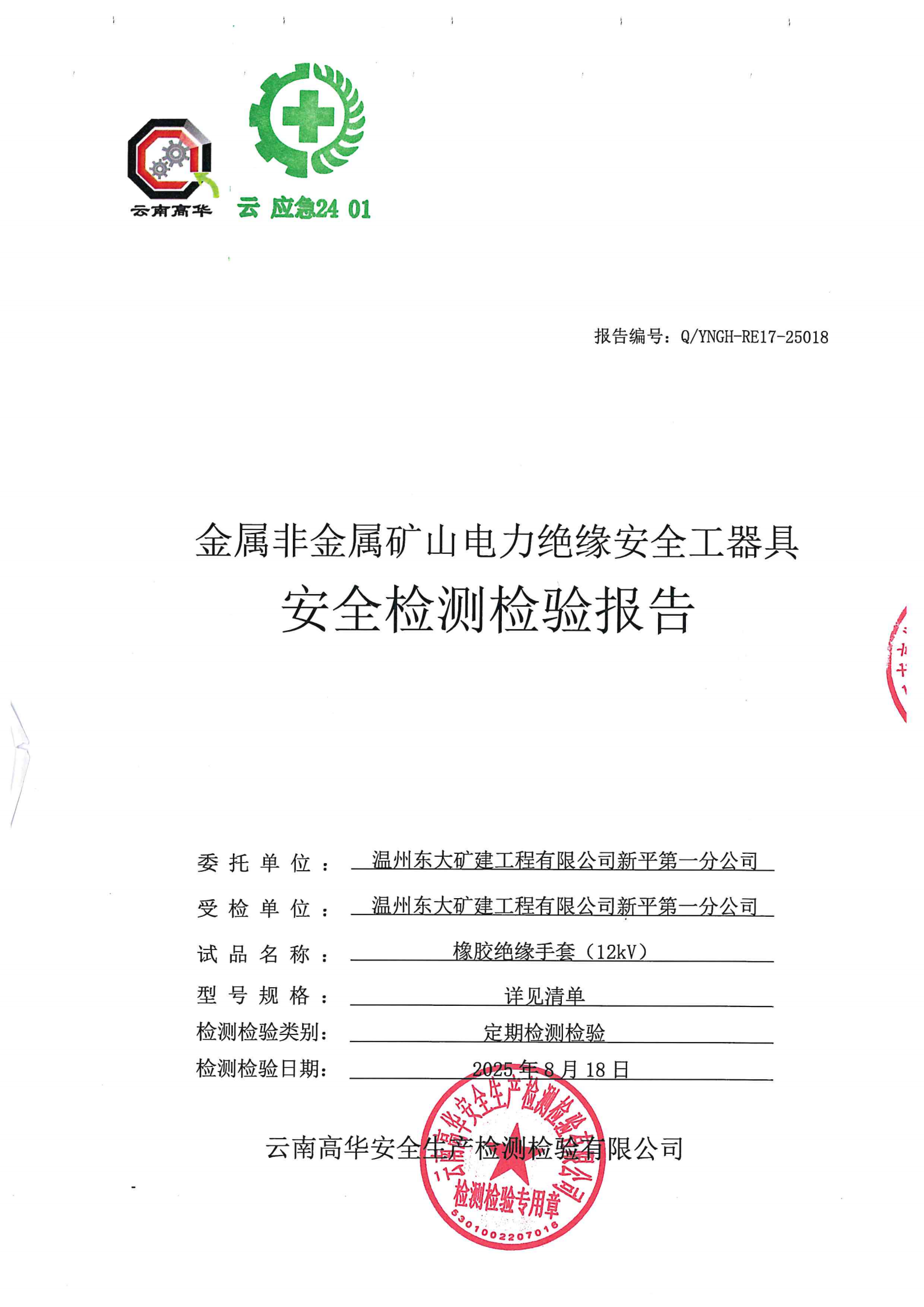 金属非金属矿山电力绝缘安全工器具安全检测检验报告