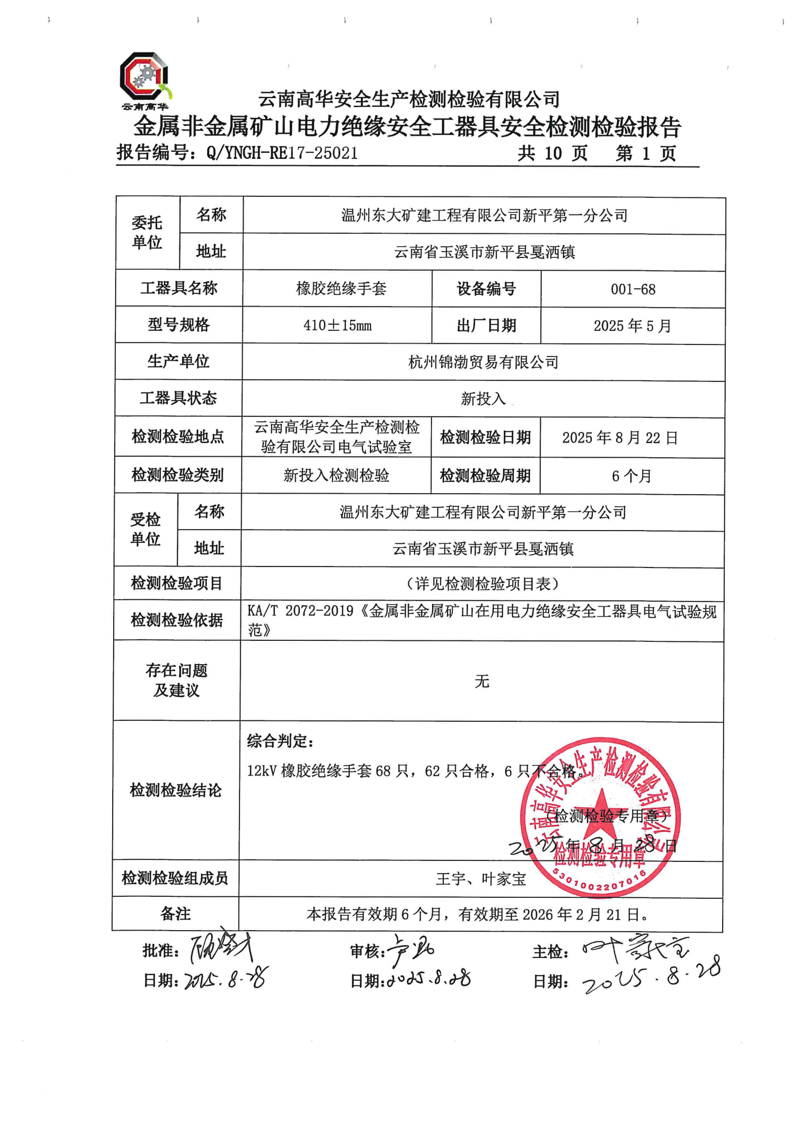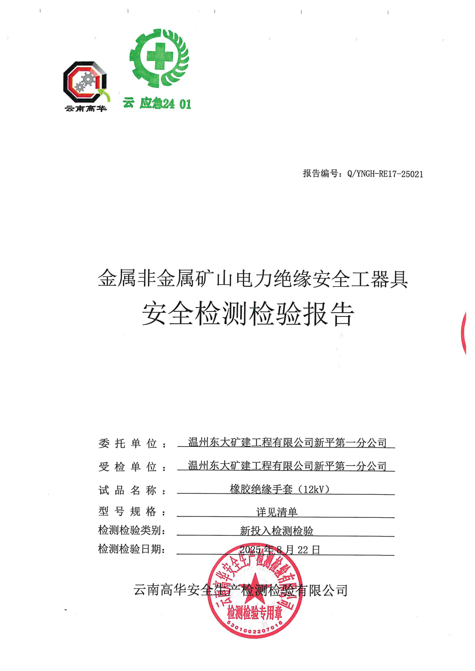 金属非金属矿山电力绝缘安全工器具安全检测检验报告